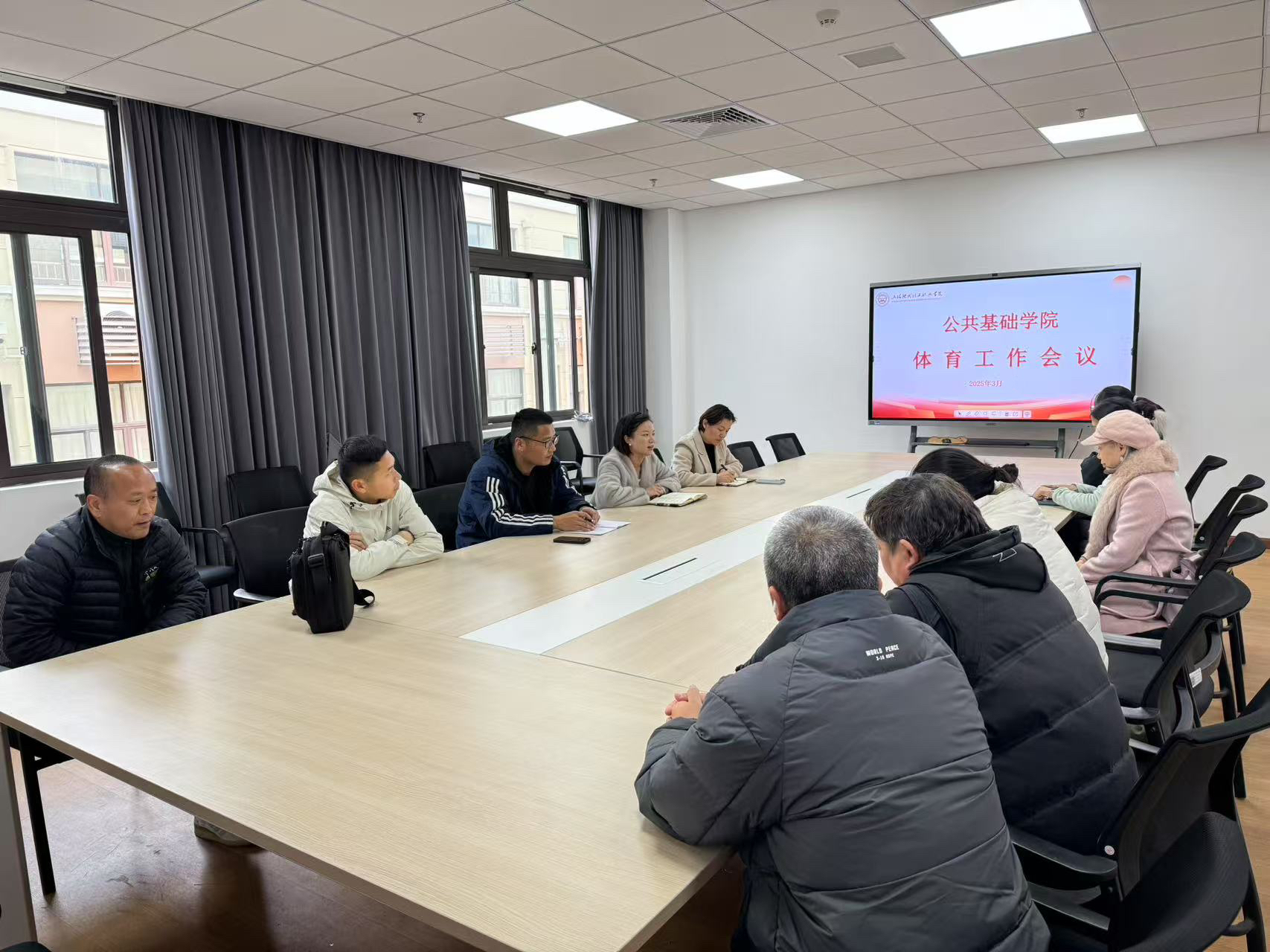 3月20日下午,公共基础学院在学生活动中心412会议室召开了新学期体育工作会议,全面总结上学期体育工作成果,规划本学期的“月月有活动”体育赛事计划,并针对器材更新与安全保障等重点问题作出专项部署。公共基础学院院长蒋方平、基础经贸党支部书记于燕娜以及体育教研室教师参加会议。