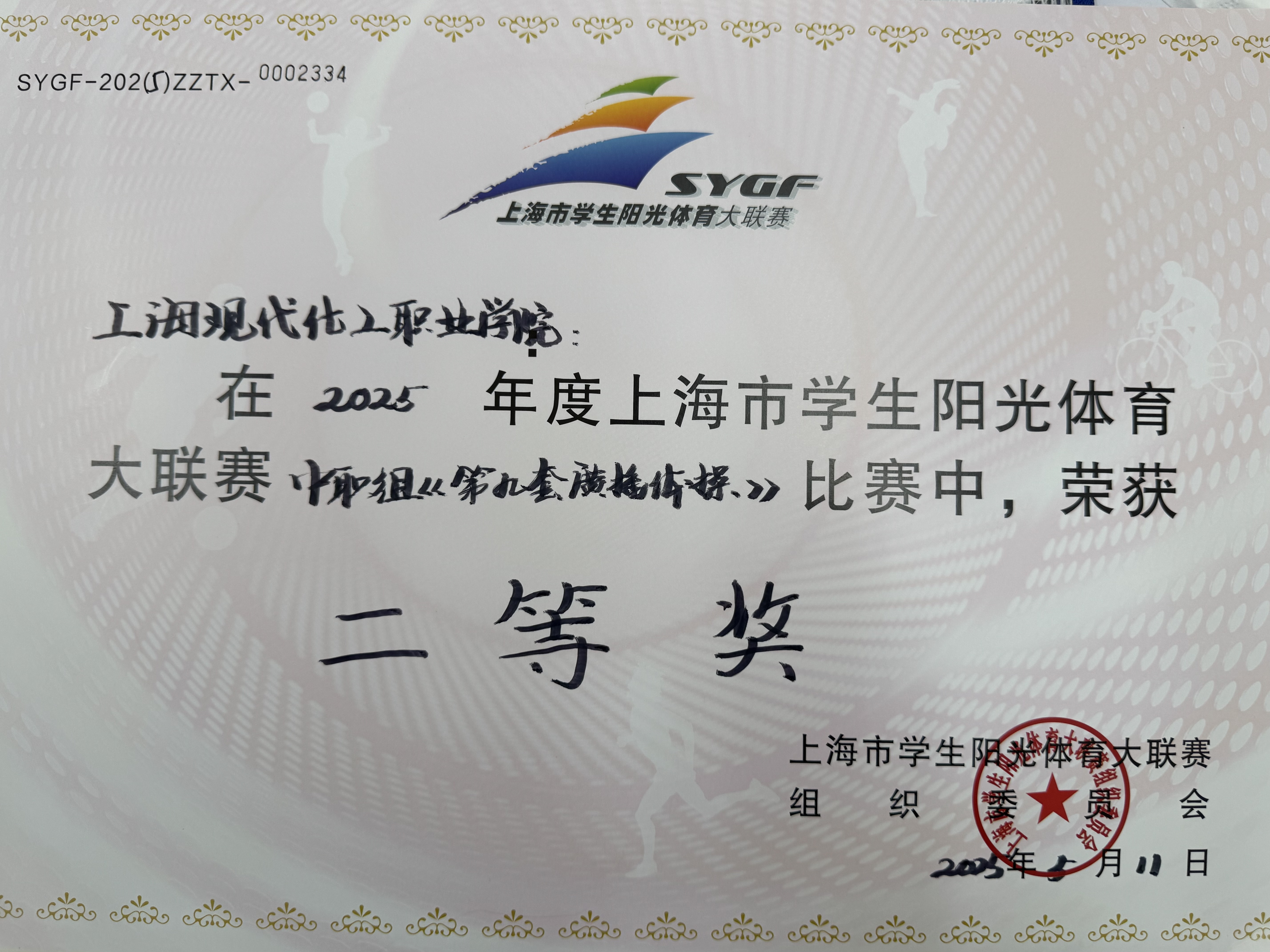 近日,2025年上海市学生阳光体育大联赛中职组广播操比赛落下帷幕。我校广播操队以满腔的热情和不懈的努力,经过激烈的角逐,最终荣获了二等奖的好成绩。