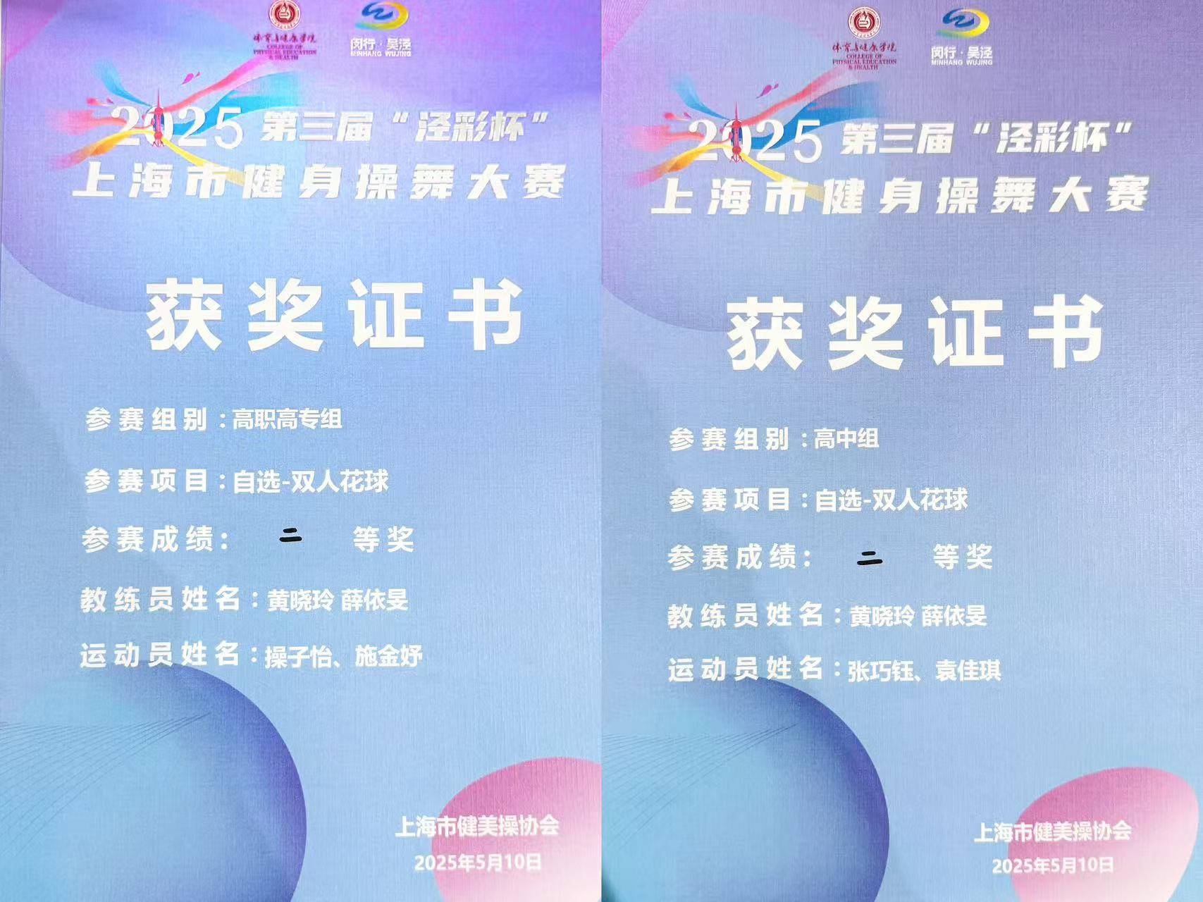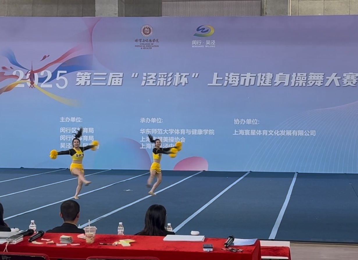 近日,2025 年“泾彩杯”上海市健身操舞大赛在华东师范大学圆满落幕。本次赛事吸引了沪上众多高校的积极参与。我校精心组织了两支队伍代表学校参赛。