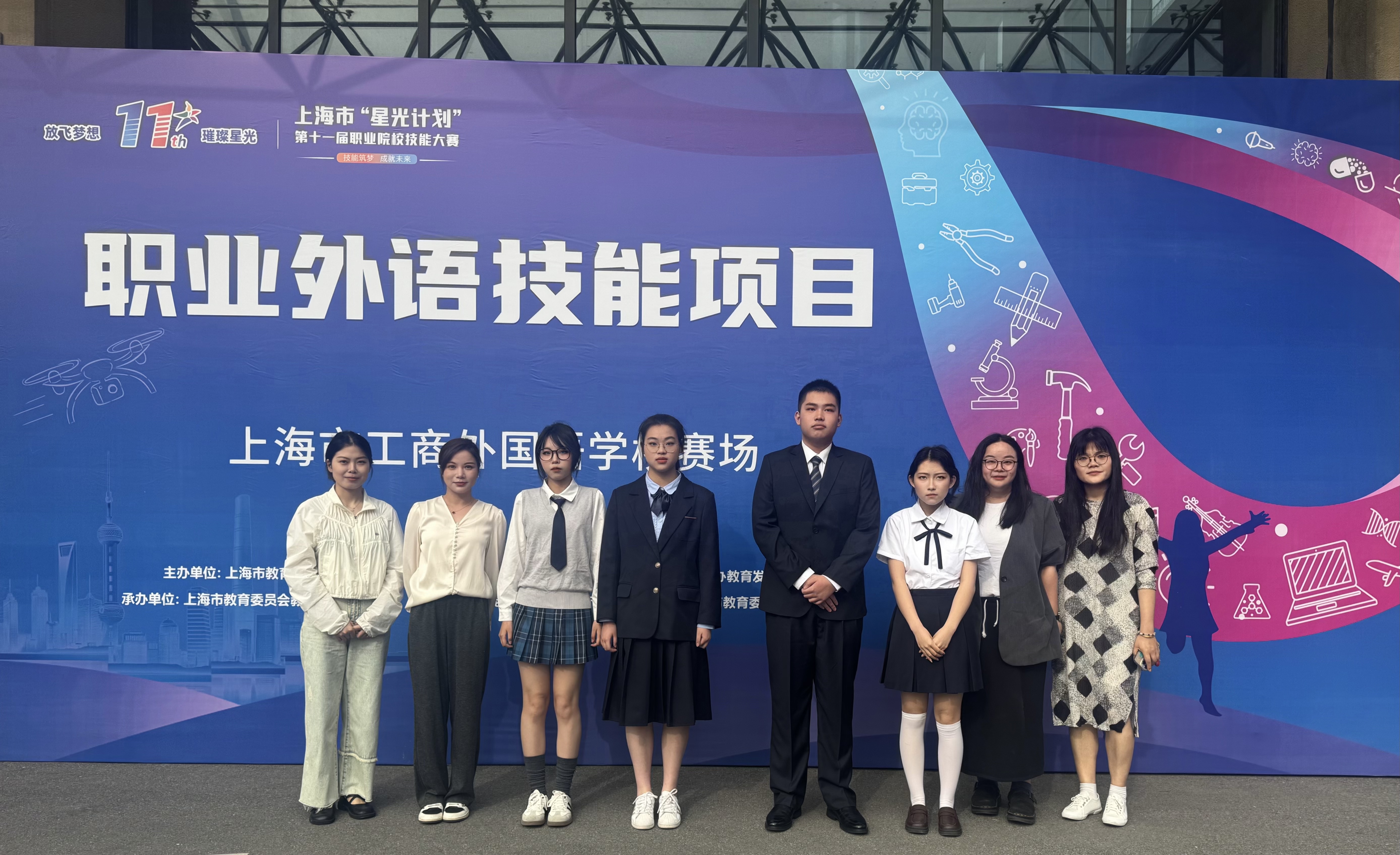 5月25日,上海市工商外国语学校内语韵飞扬,第十一届星光计划职业院校技能大赛中职组职业外语技能项目比赛在此拉开帷幕。作为上海市最具影响力的职教赛事之一,本次比赛吸引了上海市48所中职院校的192名选手同场竞技。由公共基础学院院长蒋方平带队,张圣炜、周倩、黄旖和刘雪婷四位老师指导的两支参赛队伍,怀揣着梦想与信念参与此次大赛角逐。