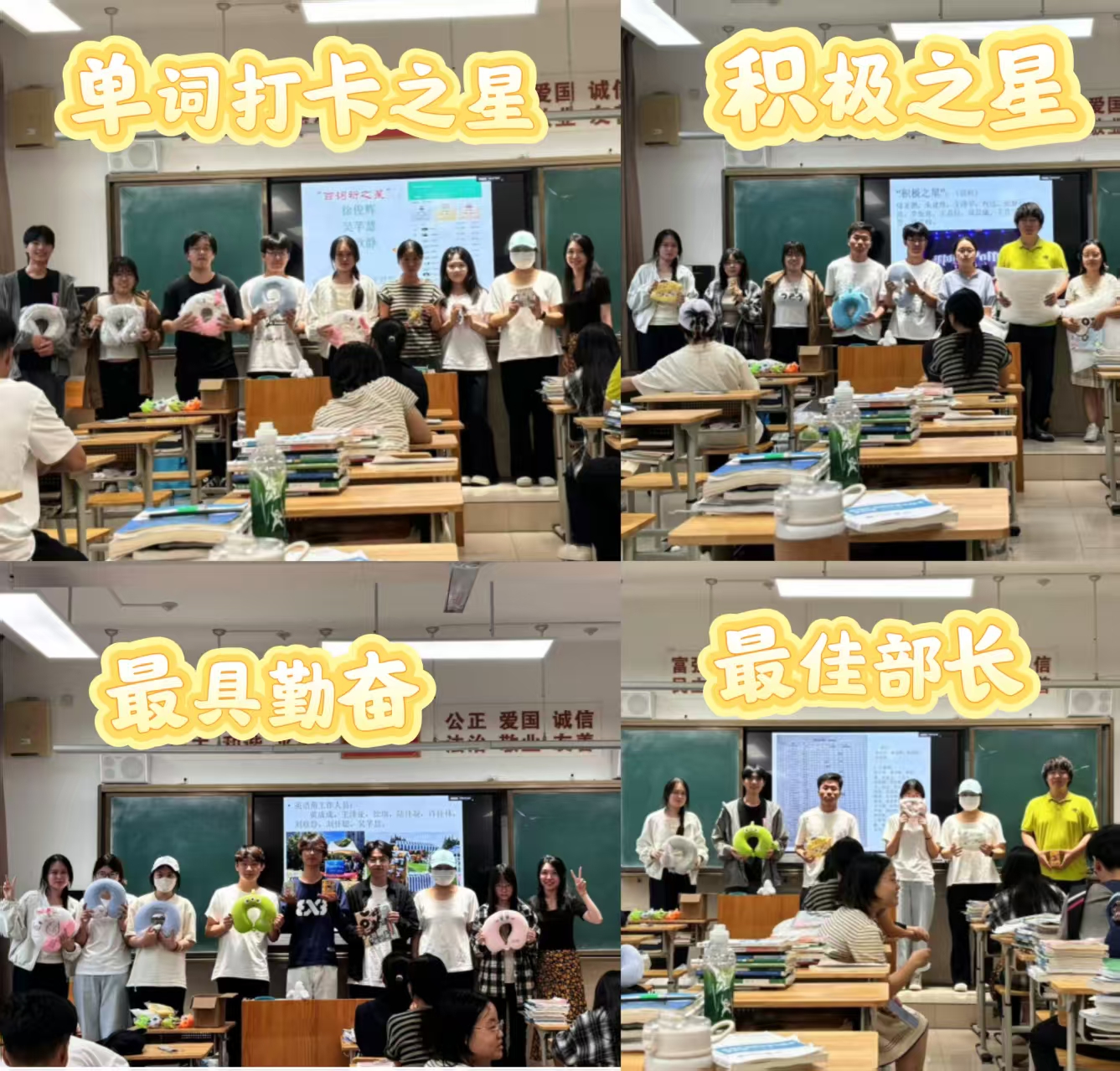 工作总结后,大会进行表彰,分别对“单词打卡之星”、“积极之星”、“最佳部长”等获得者进行表彰。