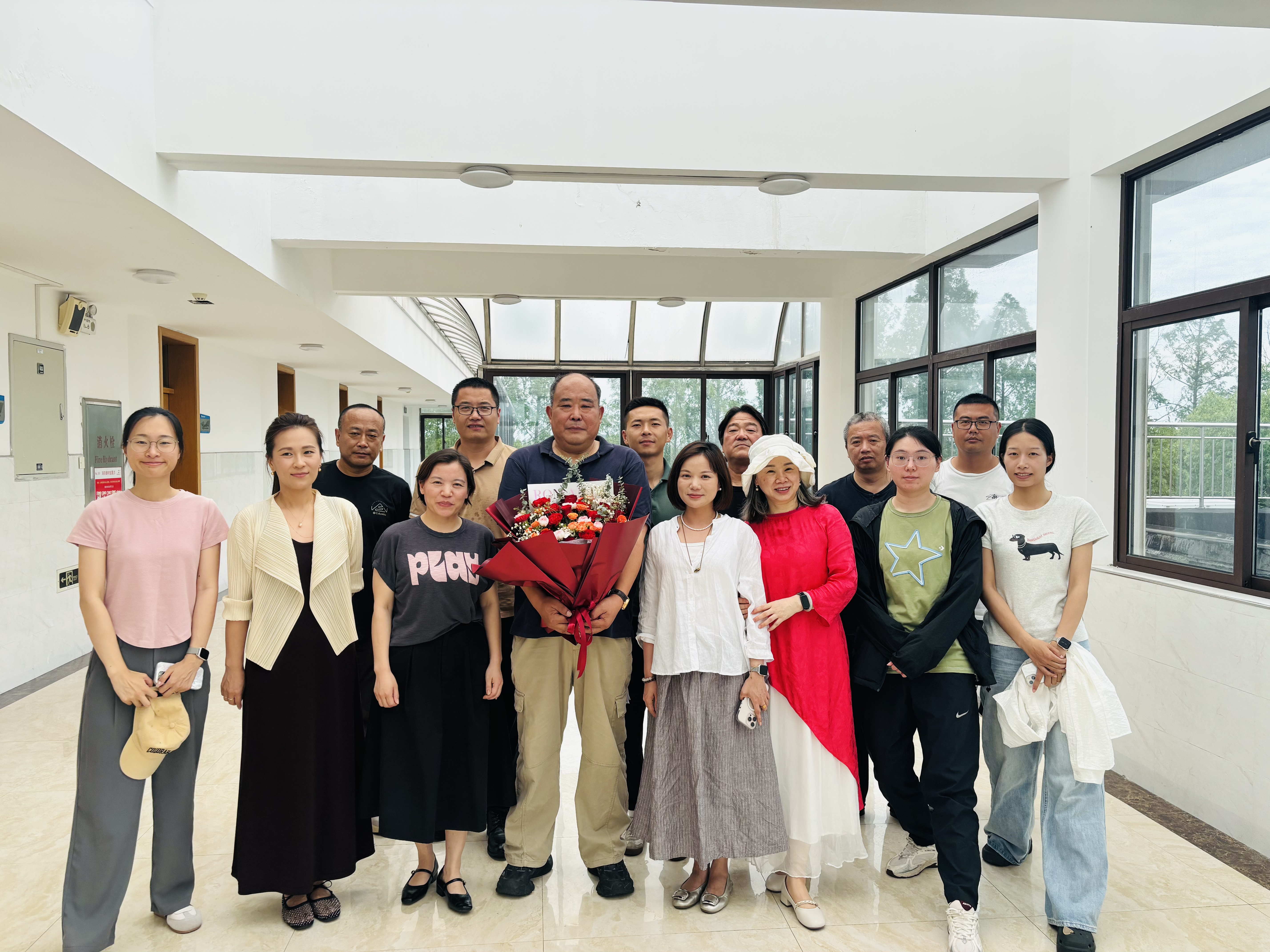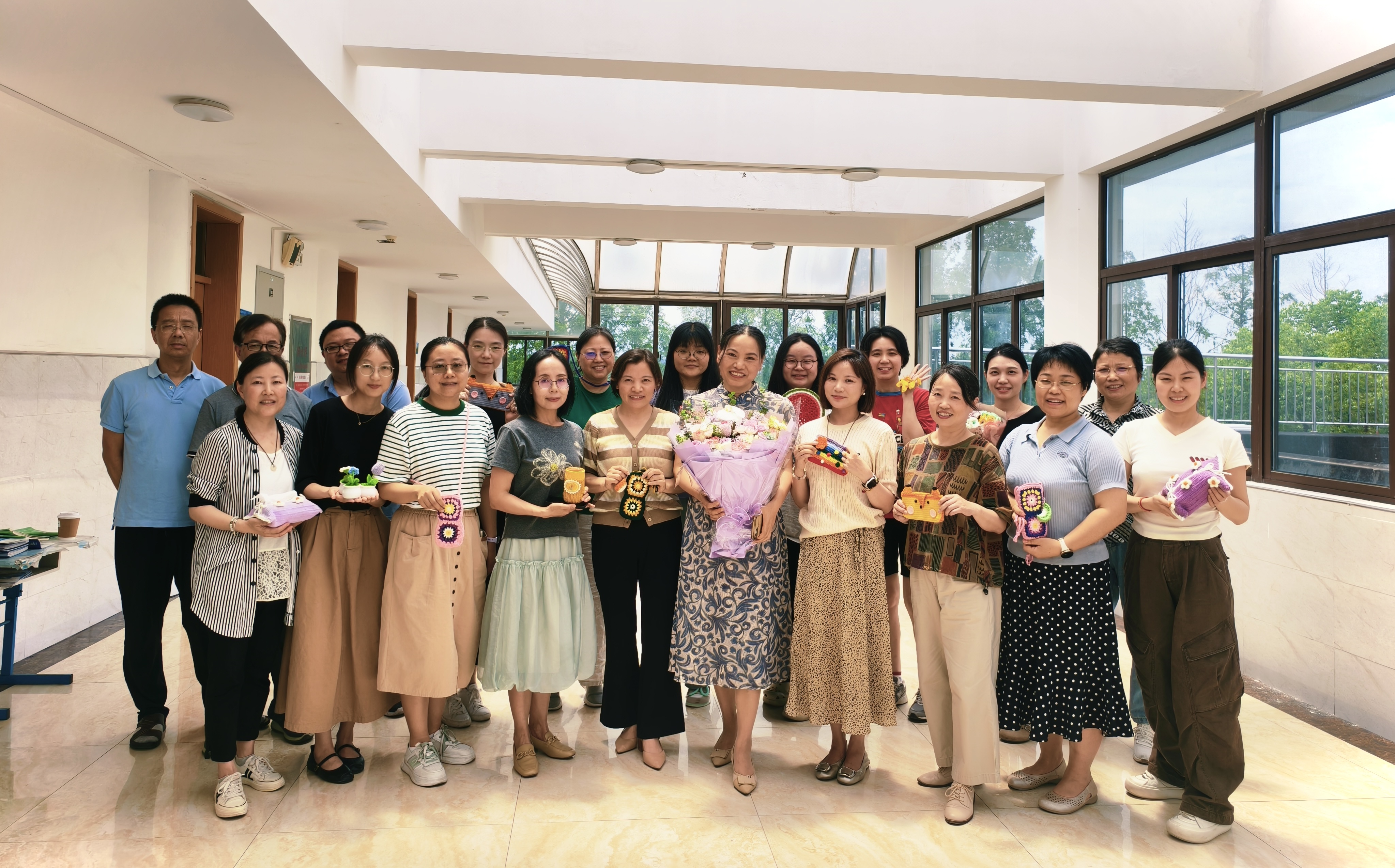 会后,学院为两位教师献上鲜花,大家一起合影留念。