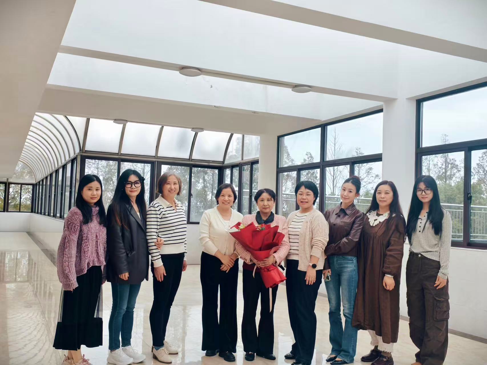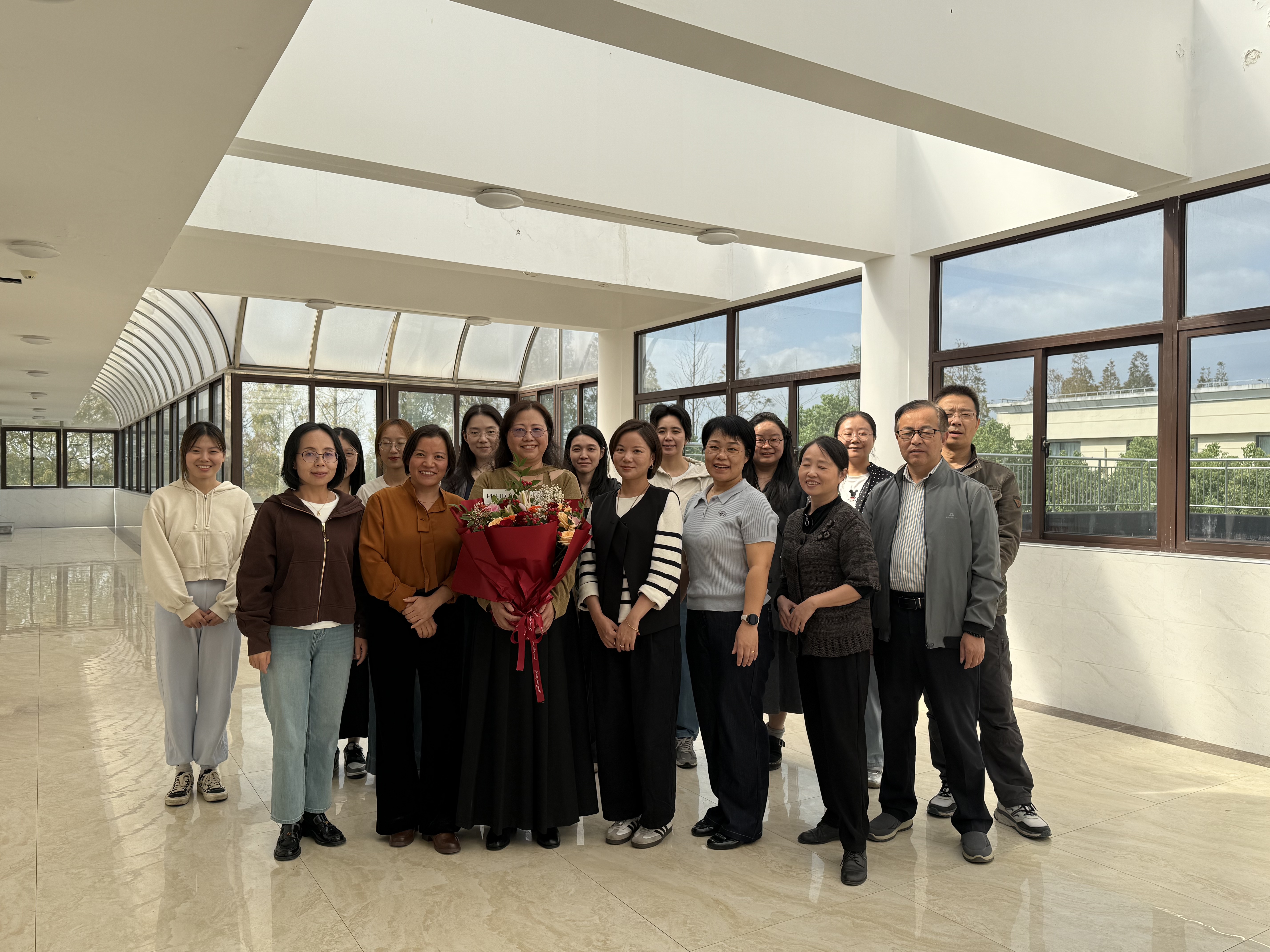 学院负责人为两位教师献上鲜花,大家合影留念,将这充满不舍与祝福的美好瞬间永久珍藏。