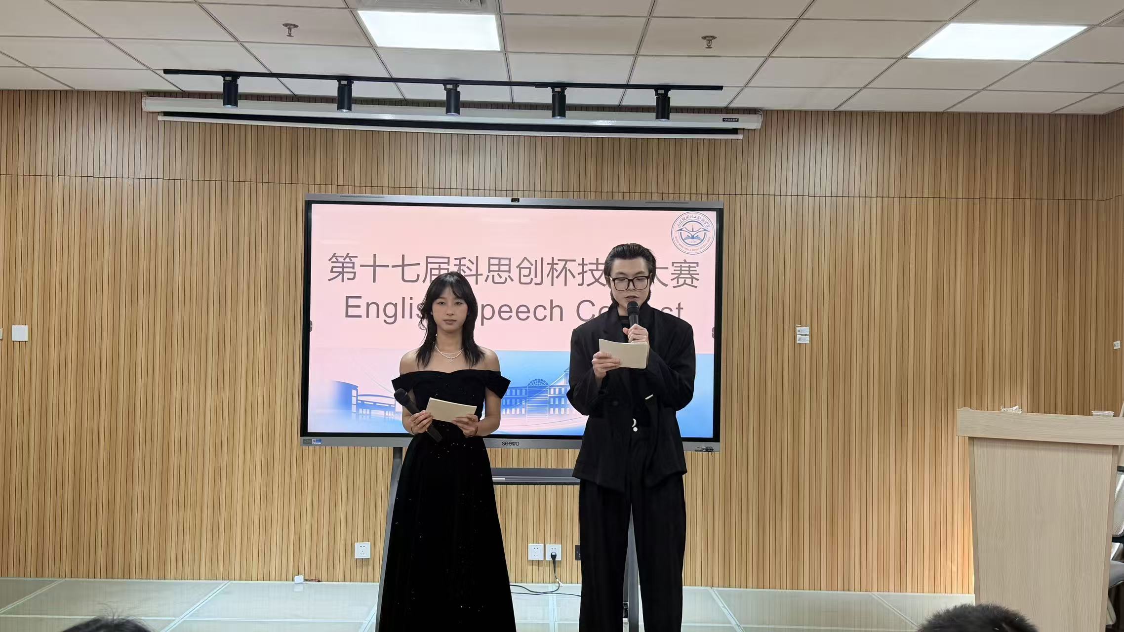 12月4日,上海现代化工职业学院第十七届“科思创杯”技能大赛高职英语演讲决赛在学生活动中心407圆满结束。本次比赛以“Future Industry, Future Me”为主题,由两位主持人活力开场,10 名晋级选手同台竞技,英语教研室全体老师担任评委,为现场观众呈现了一场兼具思想深度与语言魅力的视听盛宴。
