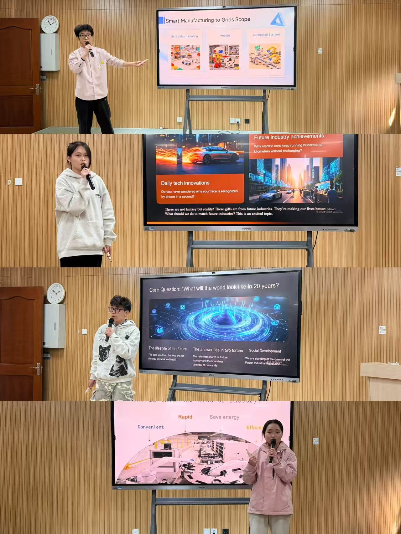比赛中,选手们围绕未来产业与个人发展的核心主题,从宏观产业趋势与微观个人定位双重视角展开演讲。他们结合 AI、新能源、生物科技等领域的发展动态,融入“AI + 医疗”“元宇宙 + 教育”等跨界案例,部分选手还紧扣自身专业特色,分享了中国产业创新实践中的所见所思。10 名选手均脱稿呈现,发音标准、表达流畅,以饱满的情感、得体的体态与观众积极互动,充分展现了高职学子的英语应用能力与创新思维。