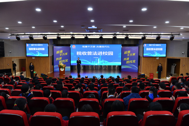 张斌指出,在全国第32个税收宣传月之际,本次税收普法进校园活动是落实上级要求,加强青少年的法治教育的重要途径。希望通过本次活动,让青少年朋友们更好的理解税收连着国与家、关系你我他,推动政府部门、学校、企业等社会各界集中资源、同向发力、顶格服务,让“税惠千万家”这句口号真正落到实处,为构建职业教育的大格局,培育技能人才的大队伍,贡献税务力量。