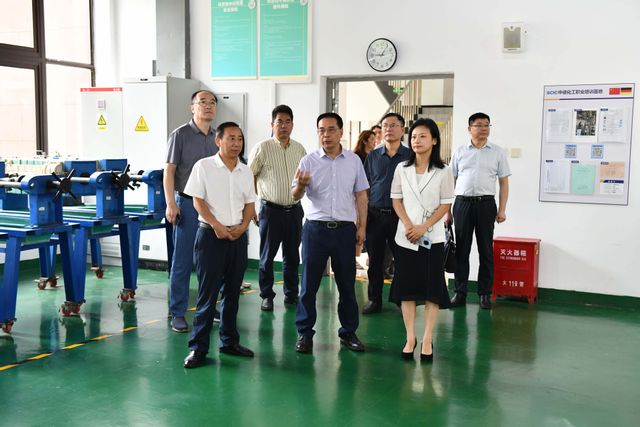 雷鸣一行实地考察了学校校史馆、跨企业培训中心、化工综合实训大楼等场所,了解实训教学管理、设备设施建设及运行情况,高度评价学校的职前人才培养与职后员工培训工作。