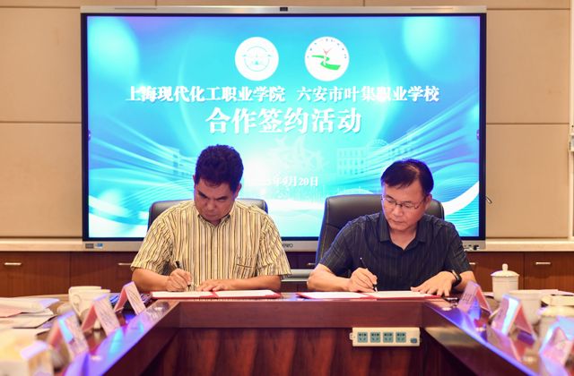 陈晓斌和孙阳分别代表上海现代化工职业学院和六安市叶集职业学校,签订合作协议。根据协议,双方将在师资培训、专业建设、人才培养等方面展开进一步合作。