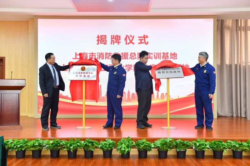 在热烈的掌声中,上海现代化工职业学院校长陈晓斌与市消防救援总队灭火救援指挥部副部长兼作战训练处处长姜飞峰签署合作协议,标志着双方合作正式启动。随后,高炬与朱志祥为“上海市消防救援总队实训基地”揭牌,陈晓斌与区消防救援支队支队长倪浩共同为“上海现代化工职业学院教育实践基地”揭牌,这进一步强化了双方合作的深度与广度,为人才培养与实践训练搭建了坚实平台。