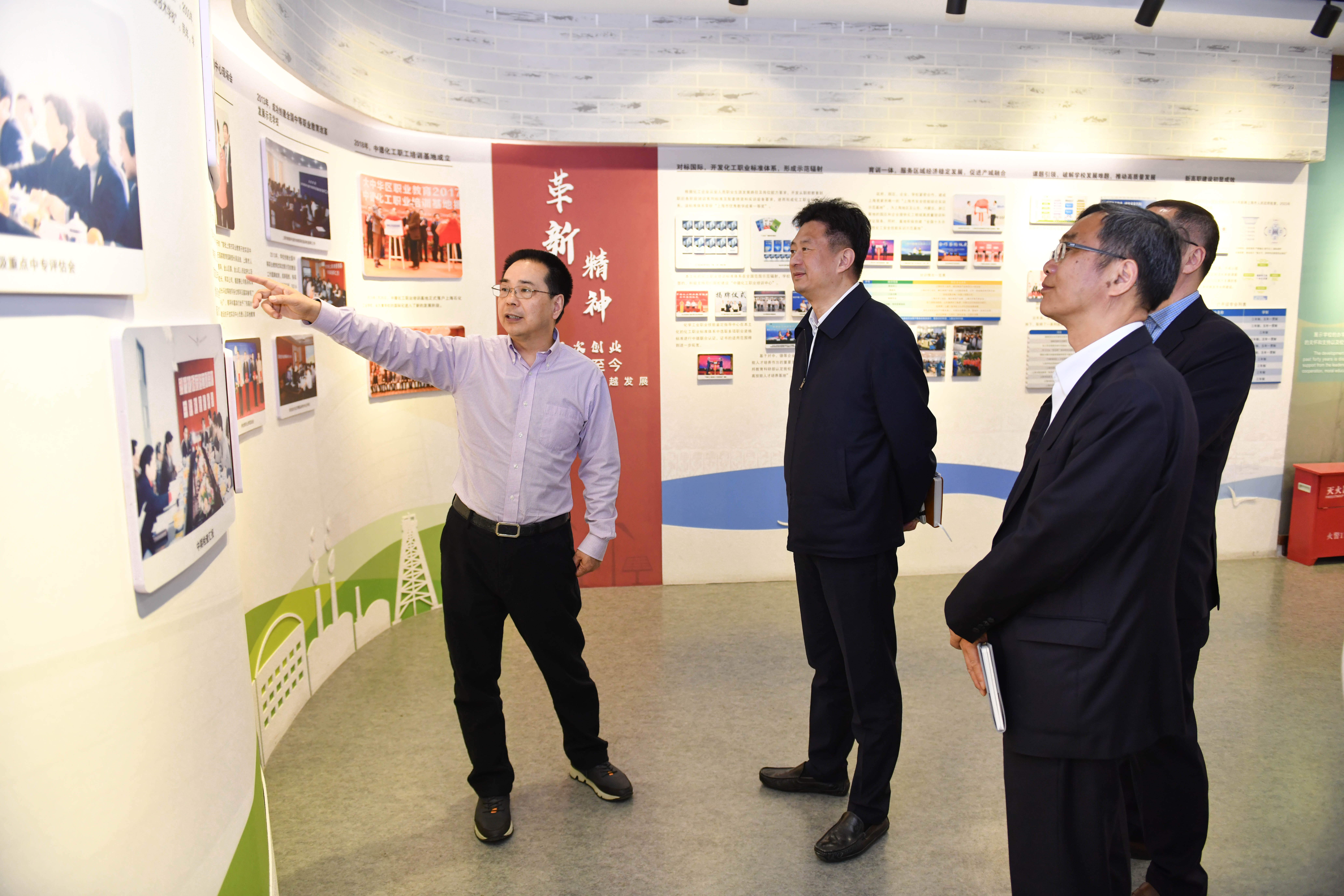 在校史馆,高炬向李炯一行生动讲述了学校扎根化工行业、服务国家战略的奋斗历程,通过历史文献、特色展品及数字化展陈,全景呈现学校在人才培养、技术创新、社会服务等方面取得的突出成就。李炯高度评价学校“为党育人、为国育才”的使命担当,特别指出“善学修德、精技致业”的校训精神与新时代化工行业人才需求高度契合,彰显了职业教育服务产业发展的核心价值。。
