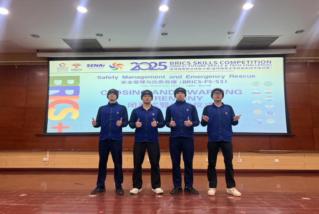 12月25日,2025金砖国家职业技能大赛安全管理与应急救援赛项国际总决赛在山东东营职业学院圆满落幕。我校消防救援技术专业参赛团队从来自中国、俄罗斯、印度等10余个国家的78支队伍中脱颖而出,凭借扎实的专业功底与出色的实战表现斩获二等奖。