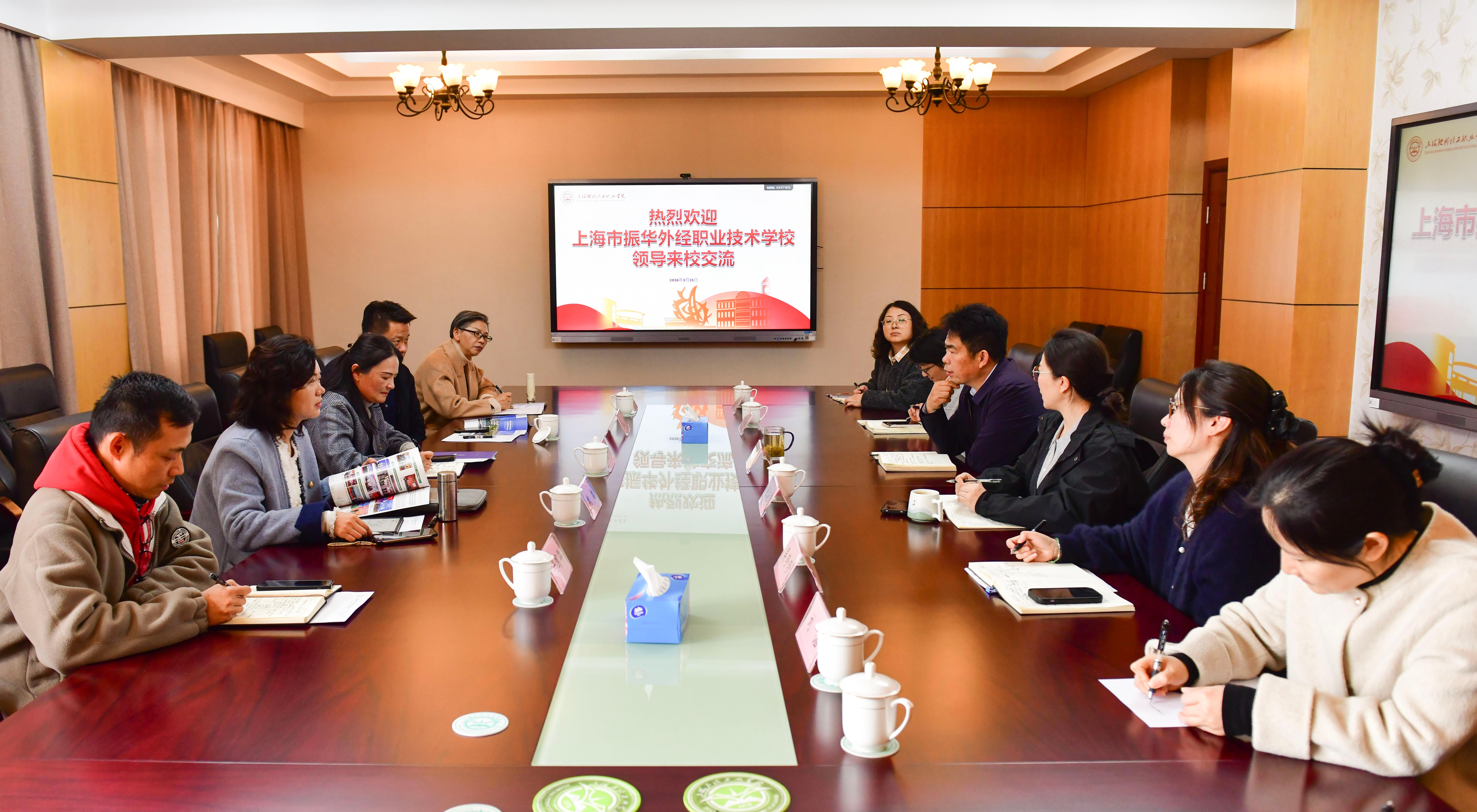 3月25日,上海市振华外经职业技术学校党总支书记张董平、校长宋亮一行莅临我校访问。校长陈晓斌、副校长张海霞出席接待,并就“智慧民生服务类”专业群中高贯通培养合作事宜与来宾进行深入交流。