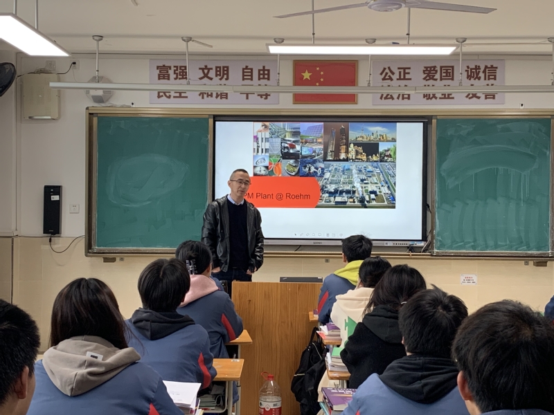 2023年3月24日(周五)上午1-2节,化学工程学院邀请罗姆化学企业专家雷忠哲为201化工04(国际)班的同学开设了一节公开课,主题为“PMMA生产工艺”。该班级同学未来的就业方向主要面向赢创和罗姆化学两家企业。