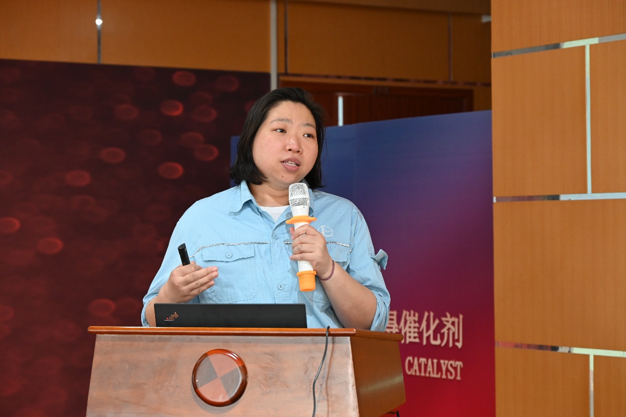参观从立得公司一楼展厅开始,宣讲员薛雯月介绍了中国石化催化剂有限公司的发展历程、主要荣誉和主要经营产品,同时进行催化剂知识科普。