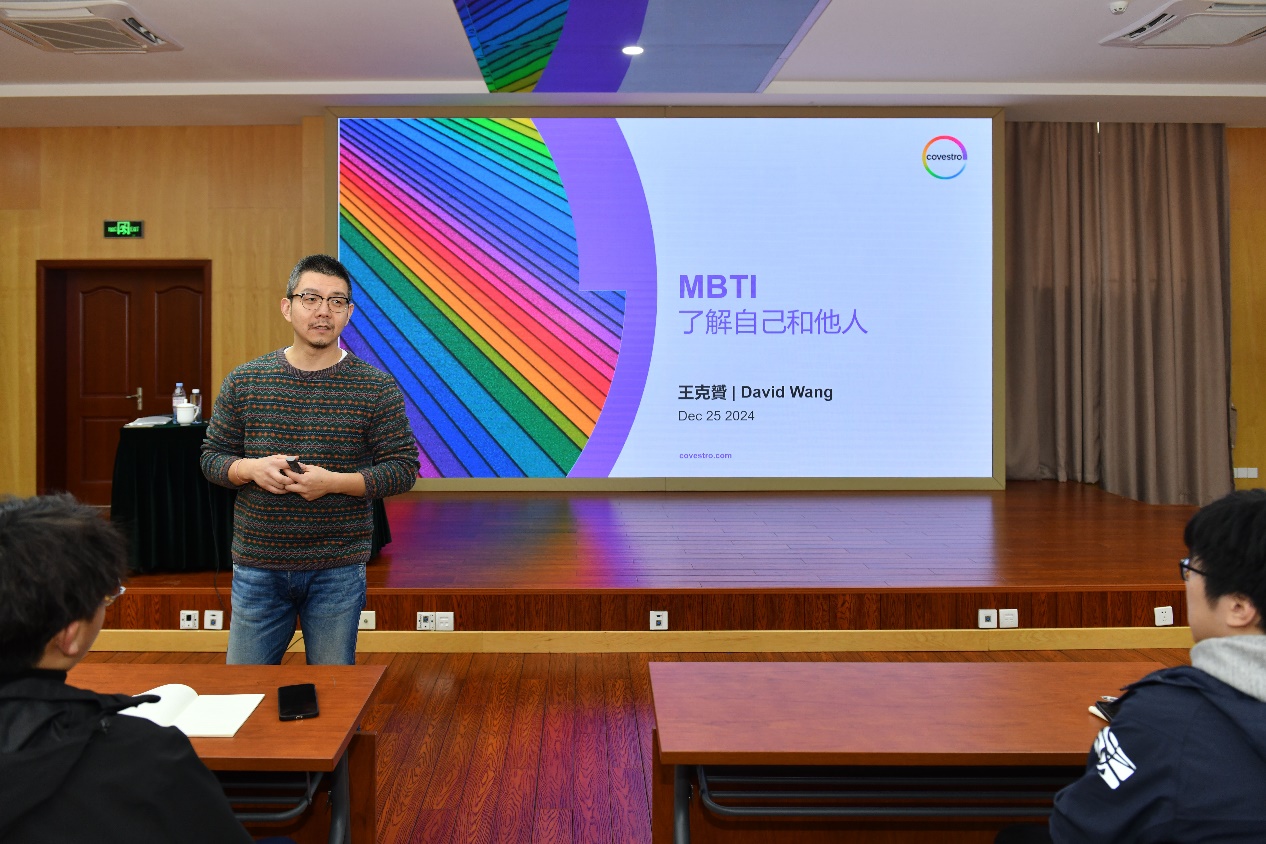 12月25日下午,科思创“化工新星成长指导”公选课程迎来了第二次授课。此次课程在B区二楼多功能厅举行,由公司人力资源部COE团队的负责人王克赟先生主讲,围绕主题MBTI——认识自己和他人展开。