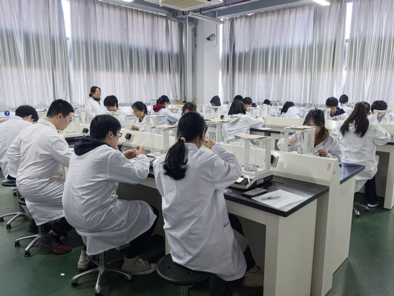 此次决赛以实践操作的形式展开,考核主要以方案公布的试题内容“氢氧化钠的标定”为准。一开始,高老师首先进行了实验室安全教育,在实验过程中要遵守实验室安全规范、考试规则。本次考核内容重点为酸碱滴定基本知识、氢氧化钠含量的标定方法、酚酞指示剂的使用、滴定管的操作、移液管的使用、滴定终点读数、实验报告的记录、实验数据的处理、实验结束后的整理整顿、安全操作等方面进行全方面考核。此次考核难度高,考核三份平行样品的测定。参赛同学们都很认真地对待此次竞赛,他们操作专注、计算严谨、有效数字保留正确,体现了分析检验的安全规范、精益求精。从考核结果看,平时积极参加化学实验技术社团的同学,其技能水平高,成绩比较好。