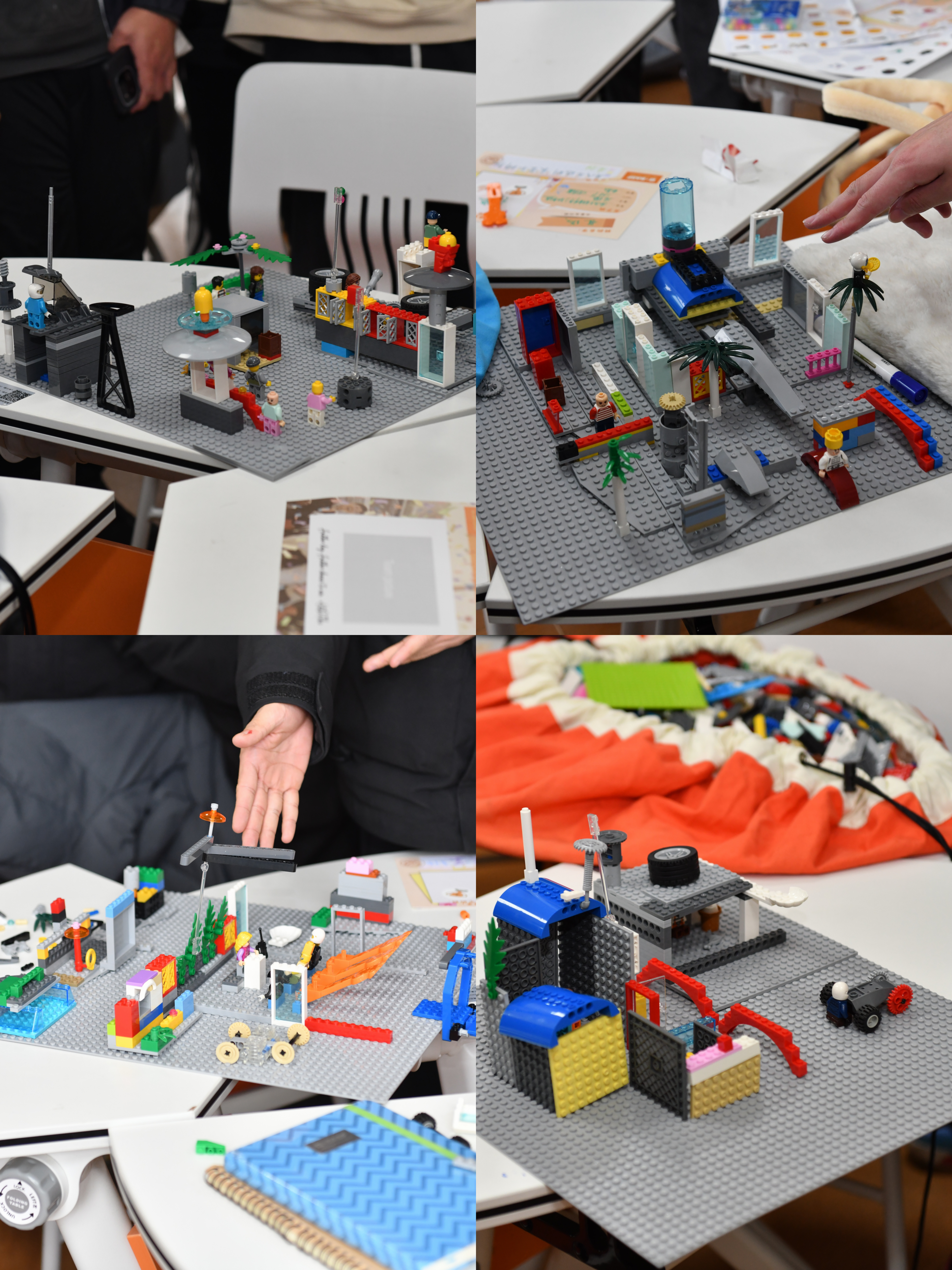 在“你心中的未来工厂”乐高创意搭建环节,学生五人一组,共设绿、红、黄、紫四组,围绕智能化、低碳化主题在规定的时间内展开设计,并进行展示。主持人引导学生从创新性、可行性等维度进行投票评优。每组学生都认真投入到创意设计中,最后红队凭借“一体化智慧工厂”项目以及精彩的介绍赢得大家的肯定。
