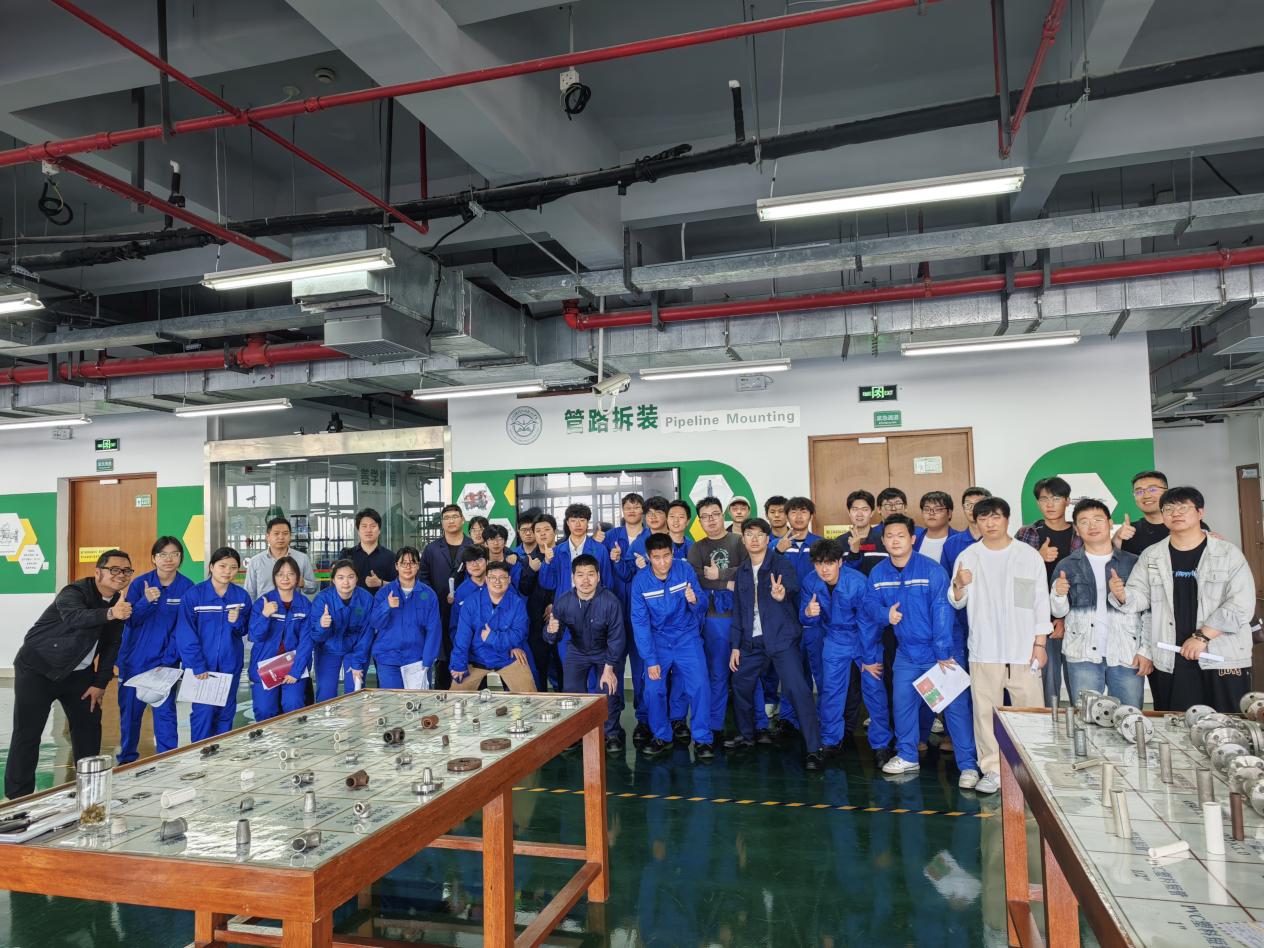 在实操环节中针对管路拆装的实操难点,专家现场演示了多能源隔离、群体作业协作等场景下的LOTO实施步骤,学生们根据企业专家的指导对课程内容进行了实操。