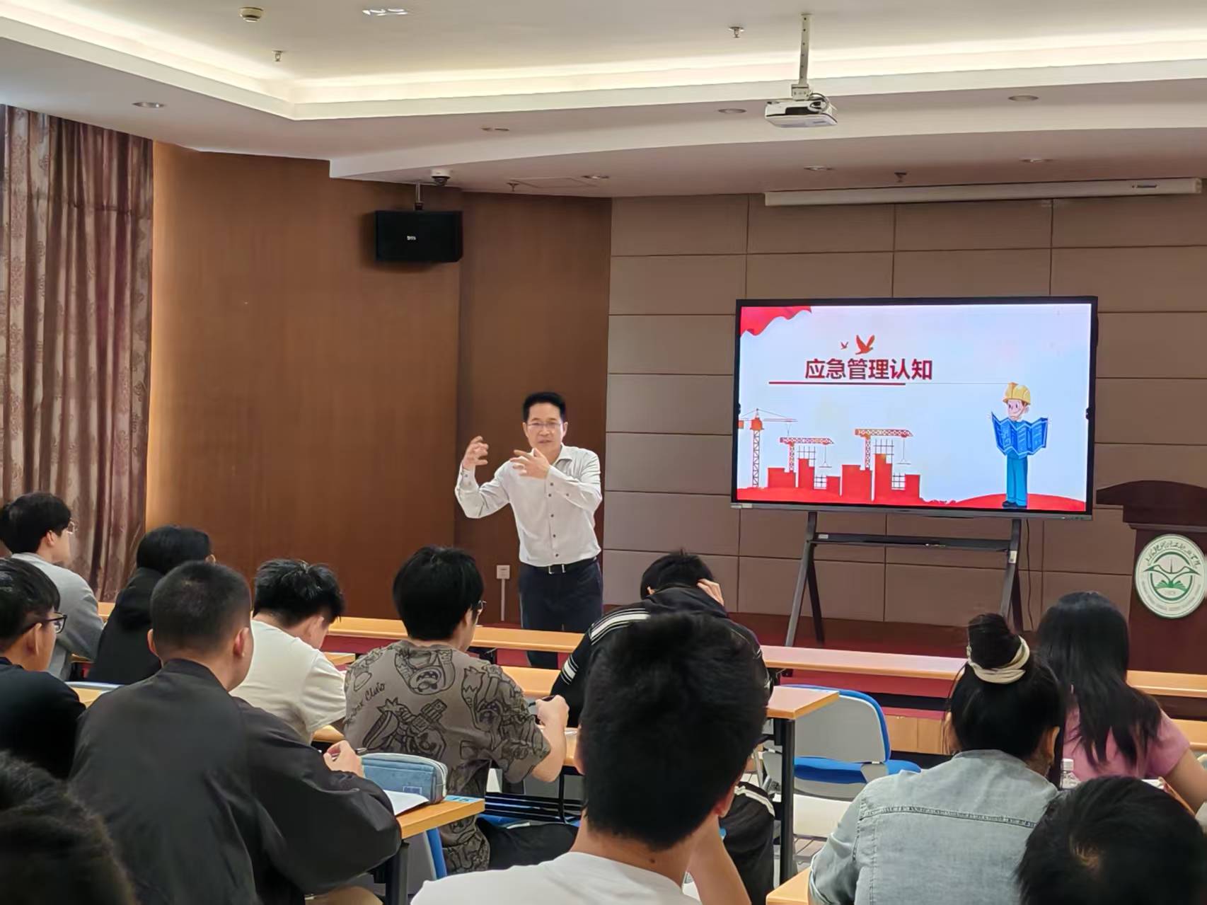 课堂上,于敦亭以其精湛的专业知识和丰富的实践经验,为同学们展示了实际企业中应急管理的典型案例,深入浅出地向同学们讲授了应急管理的基础、基本遵循和管理方针。他强调安全始终是企业运营的重中之重,在生产过程中将面临各类安全风险,要学会如何通过科学的应急管理体系来预防和应对这些风险。他指出,应急管理不仅仅是技术问题,更是一种文化和责任。化工企业需要培养员工的安全意识,确保每个人都能在紧急情况下做出正确的反应,尽可能避免事故发生或减轻事故后果的严重程度。同时,他还鼓励同学们要注重培养创新思维和解决实际问题的能力,不断提升自己的综合素质。