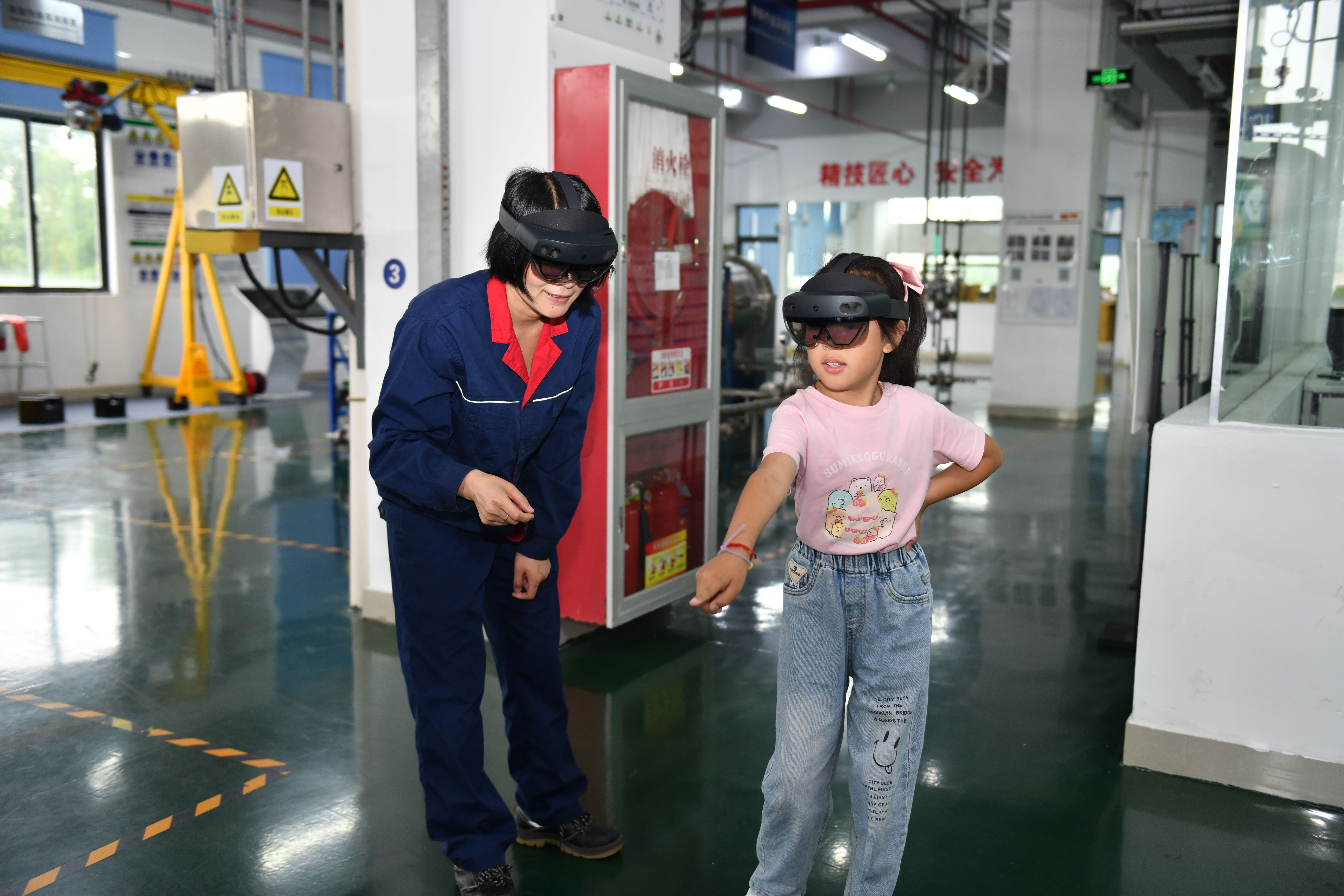 同学们头戴MR眼镜,满满的科技感,他们都在体验和探索人工智能和传统化工的结合。他们的眼里充满了好奇,通过这样的体验活动希望孩子们能够在心里种下一颗学习的种子,在不断探索中发现、培养、成就自己。