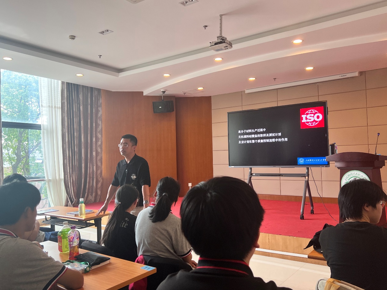 为深化产教融合,提升应用化工技术专业人才培养质量,5月27日上午,化工学院特邀科思创聚合物(中国)有限公司的企业专家李清龙走进231应用化工班课堂,以《基于ISO 9000体系的生产全过程质量控制——原料、过程与成品取样测试策略及控制图应用优化》为主题,为学生带来一堂理论与实践深度融合的专业课。课程聚焦高分子材料生产中无机填料的质量管控,将行业标准与企业实践深度融合,助力学生构建系统化质量管理思维。
