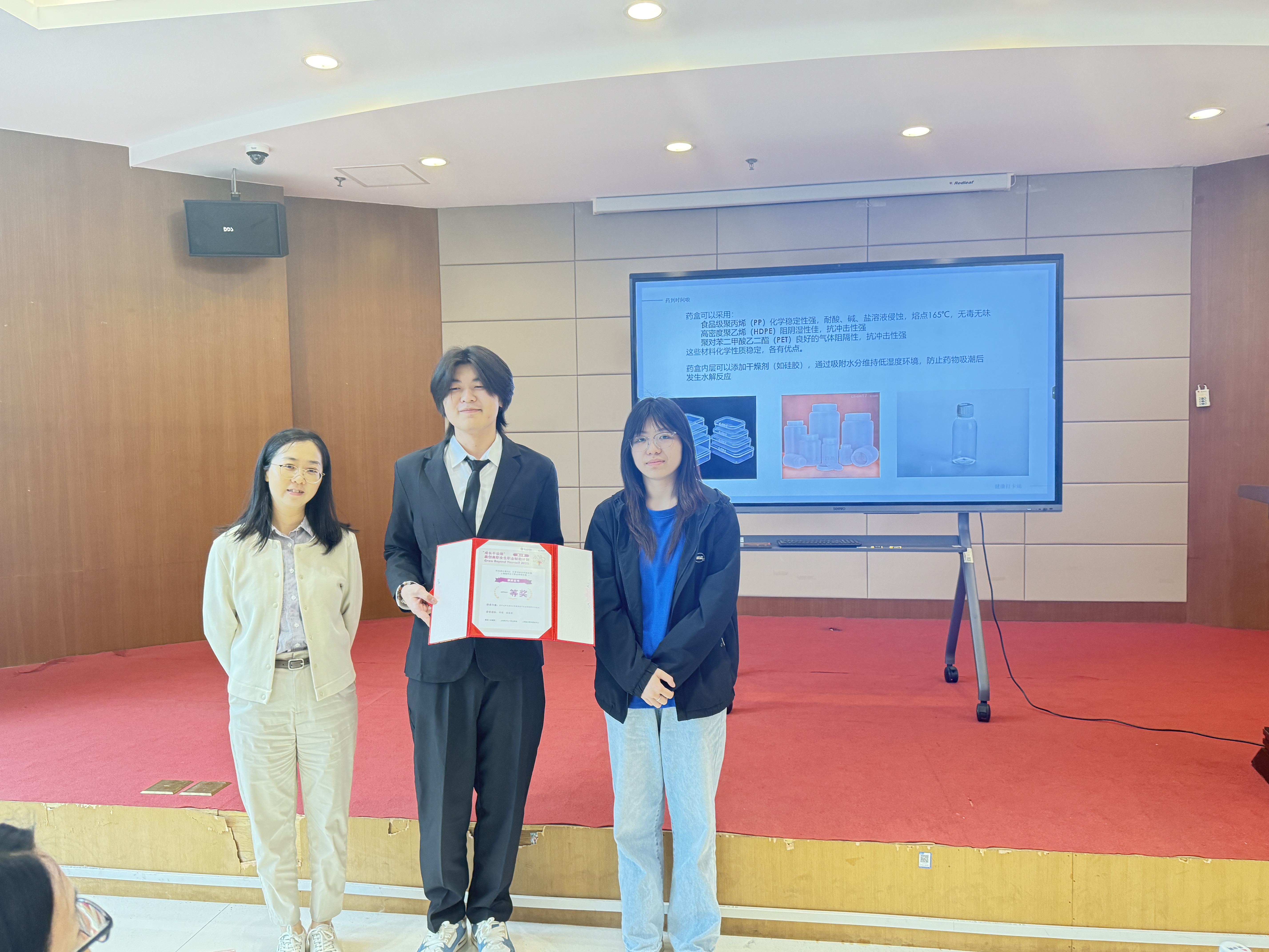 本次比赛邀请到了赢创公司培训工程师杨璐颖、赢创公司管理体系工程师何静、上海现代化工职业学院化学工程学院教研室主任王志平、上海现代化工职业学院化学工程学院三年制专业导师孟石担任校赛评委,四位评委通过4项一级标准与10项二级标准开展立体化打分。在比赛现场,各队参赛选手准备充分,跃跃欲试,借助精心制作的PPT,围绕选题背景、方案实施以及创新点等话题进行了生动的展示。在答辩环节,面对几位评委的提问,选手们反应迅速、回答条理分明,表现出深厚的知识底蕴和出色的应变技巧。经过紧张的角逐,比赛最终决出了一等奖、二等奖和三等奖。《废弃龙虾壳提取壳聚糖制备3D打印耗材》项目不负众望,一举夺冠,他们将受邀到上海进行最终的决赛及夏令营活动,分享实践成果,展示如何利用化学,让生活变得更加可持续更加美好,并角逐全国总决赛资格。二等奖和三等奖团队同样也表现优秀,从不同角度分享了研究成果,展现了各位参赛者在化工领域的创新思维,为台下观众带来了精彩纷呈的展示。