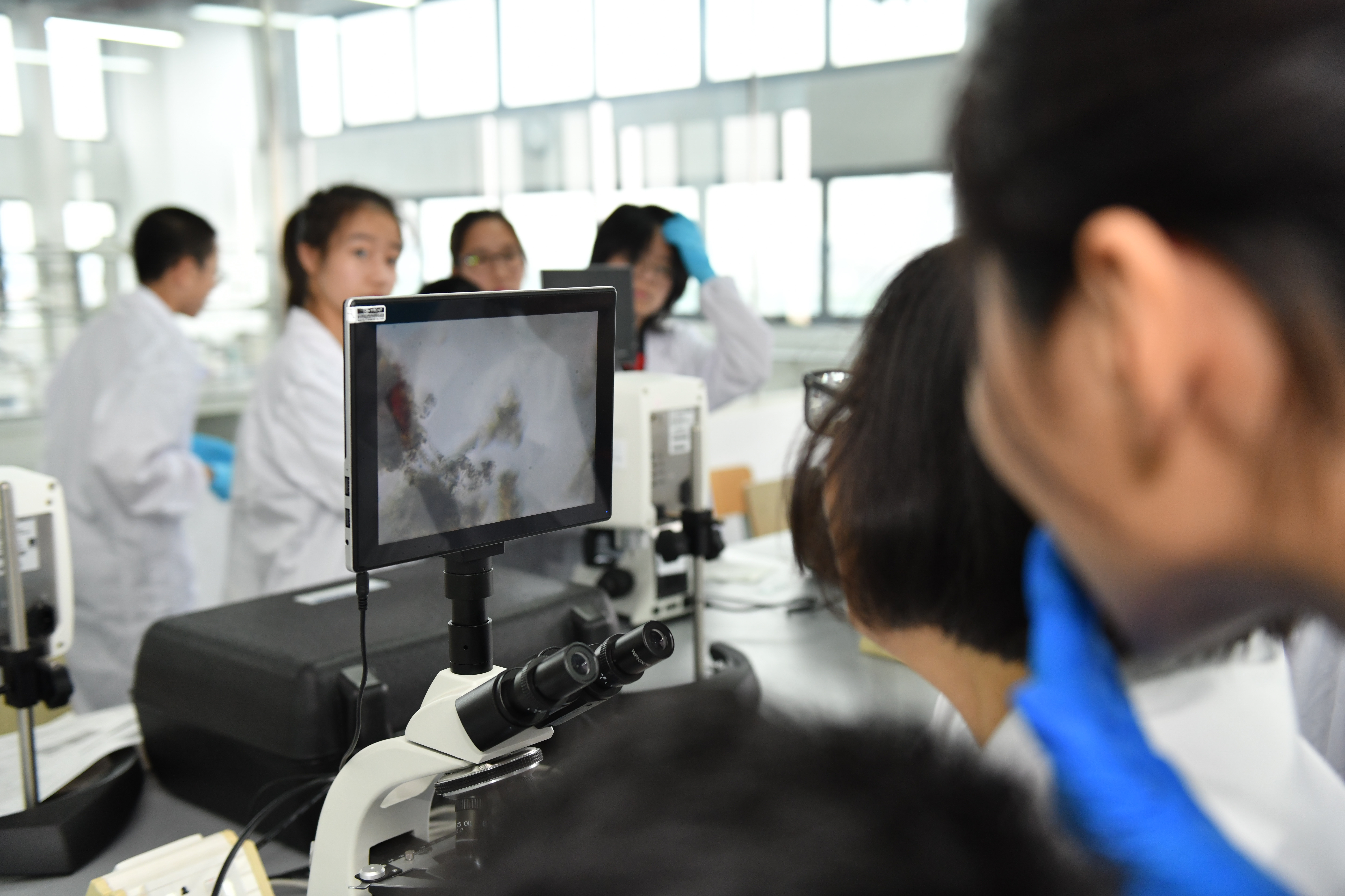 污水检测实验室里,显微镜屏幕上的微观世界让学生们驻足。指导老师详解水样来源与制样过程后,大家亲手操作显微镜辨识微生物,在实践中理解环保检测的技术逻辑。