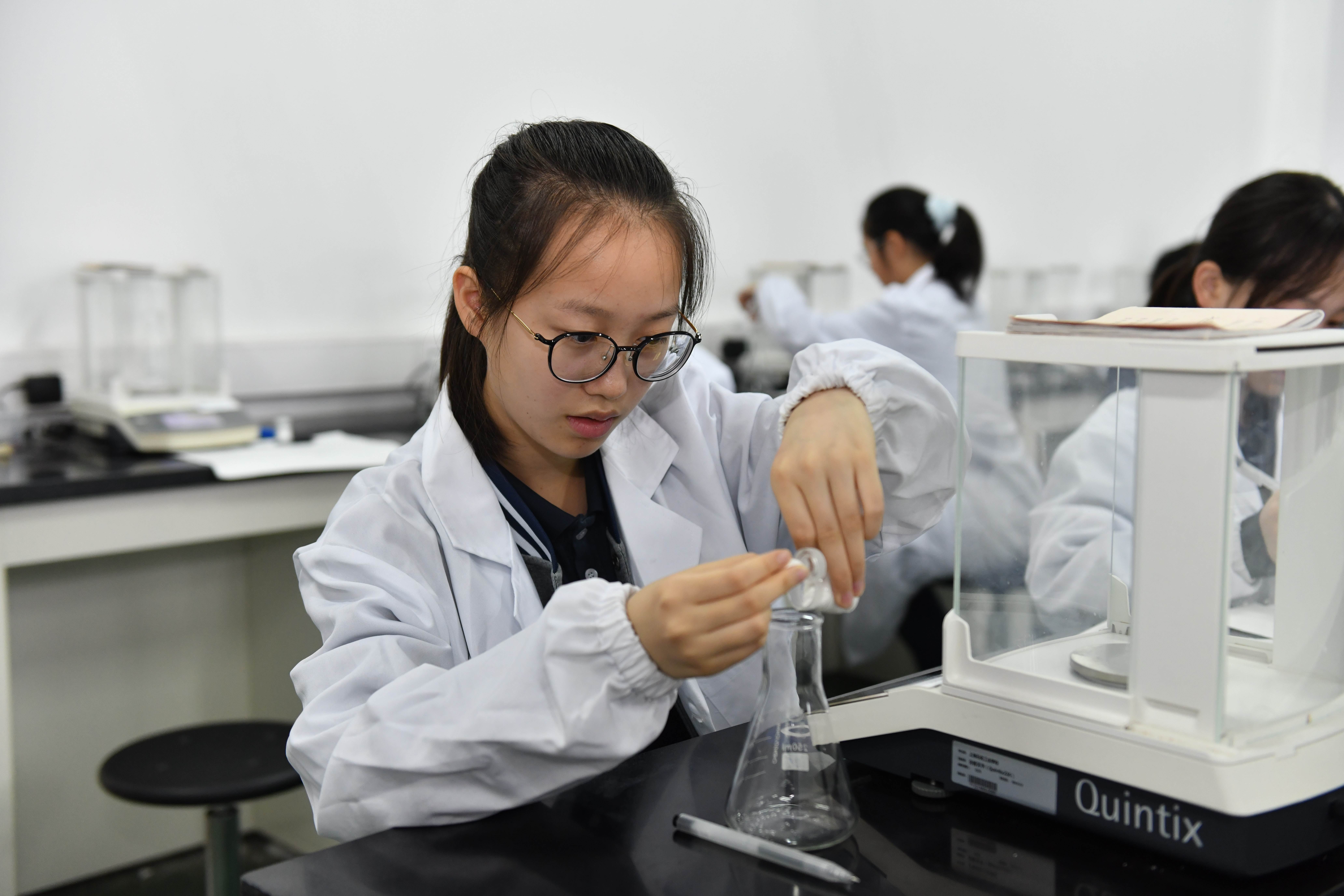 基础化学实验实验项目中,指导教师首先对学生进行了安全教育,强调实验操作过程中做好个人防护。无论是分析天平的使用还是pH计的操作,都要严格按照标准流程进行实施,直观感受化学检验的严谨性。