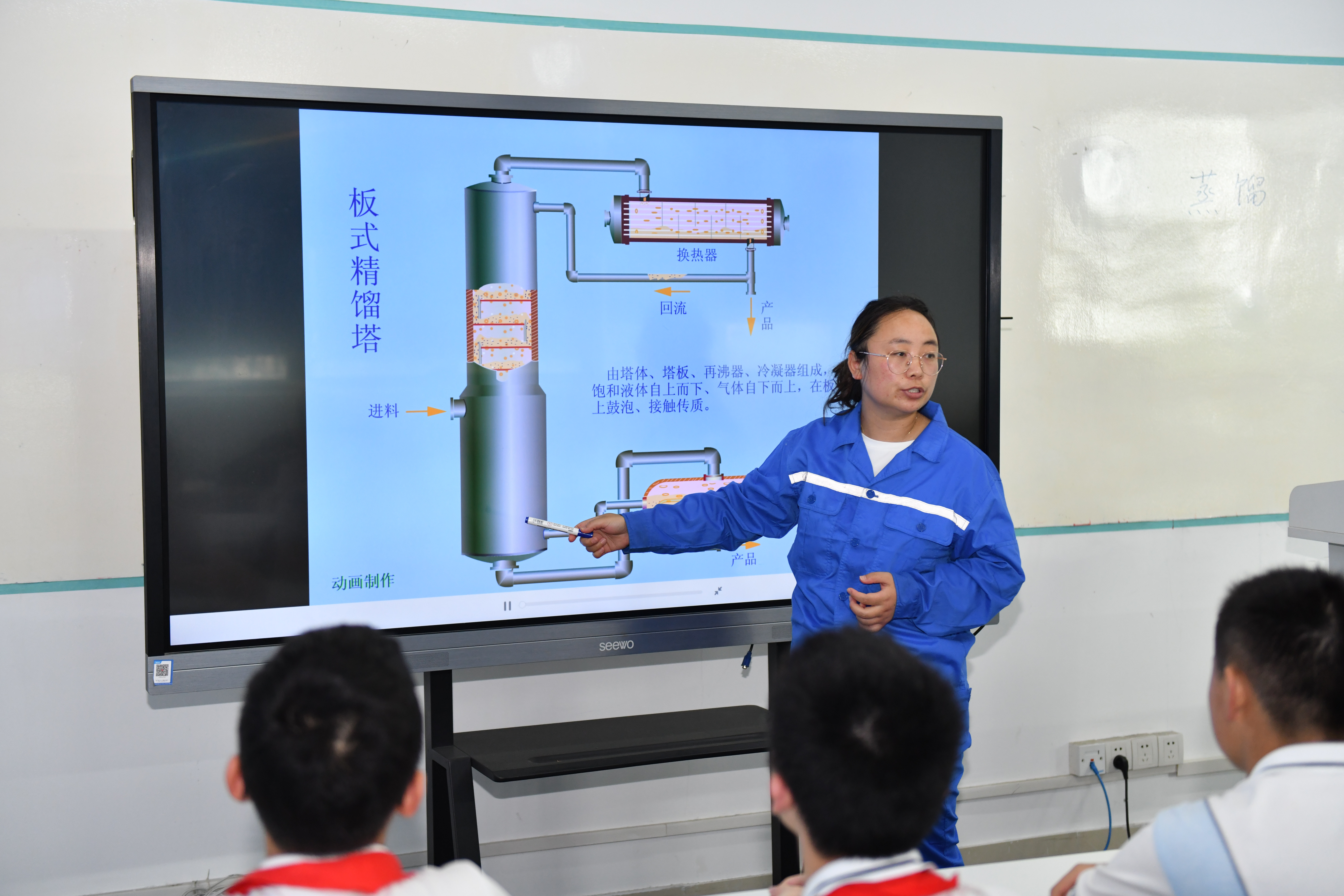 大精馏实训室内,带教老师以石油在生活中的应用为切入点,先介绍安全标识与危险防范知识,再循序渐进引入精馏操作的原理与意义,让学生在建立安全意识的基础上探索化工奥秘。