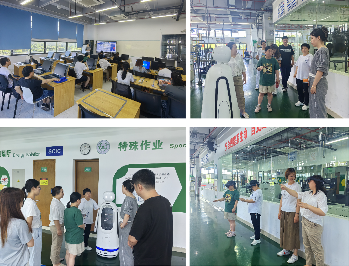 6月30日,教师们系统学习了化工生产现场巡检方法和要点,体验了智能机器人辅助巡检的实际场景,认识到智能设备对提升巡检效率与精准度的重要作用。MR虚实叠加技术可以将设备内部结构与复杂工艺流程直观呈现,教师们在虚拟环境中沉浸式完成碳二加氢反应器的拆装、催化剂装填等操作,深入理解了设备的内部结构与工艺流程。此外,当天教师们还同步学习了学校智慧云平台的操作使用方法,为后续教学中有效整合线上资源、创新实训教学模式、提升实训教学效果奠定了基础。