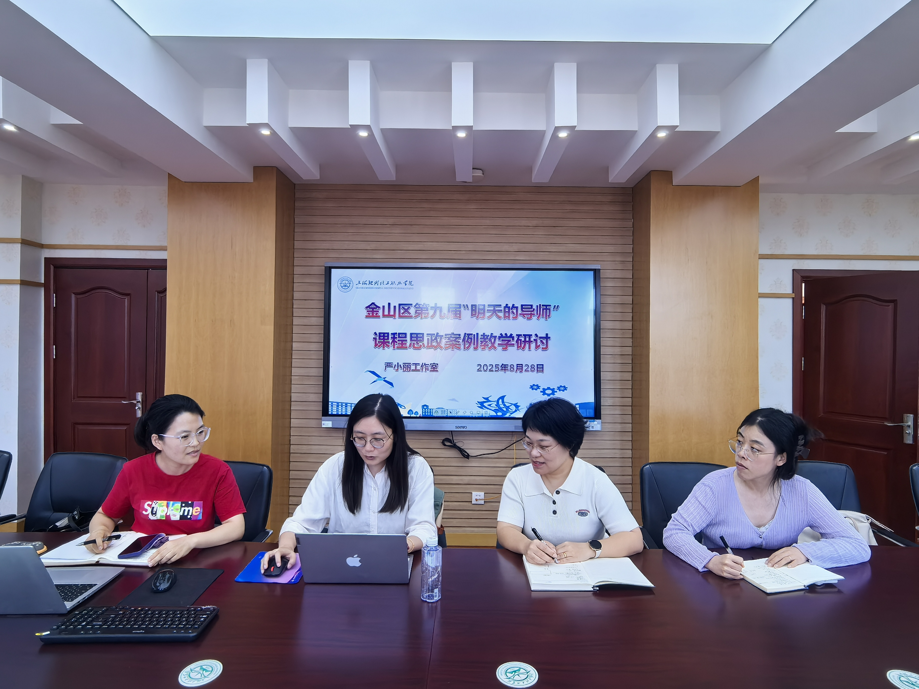 为了推动思政教育与学科教学深度融合,提升教师课程思政教学能力,8月28日,金山区第九届“明天的导师”严小丽工作室在厚德楼三楼会议室开展课程思政案例教学研讨活动。活动邀请了市教委教研室柳叶青博士,为项目组提供专业指导和支持。