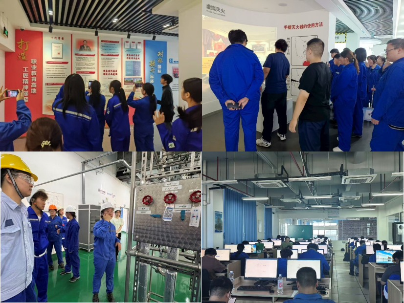 周二的实践开启了 “理论 + 实操” 双轨模式。上午,各批次学生兵分四路,同步开展校史馆参观、科普馆参观、科思创中试实训与赢创精馏实训。在科普馆,同学们驻足于专业装置模型前,认真聆听讲解;科思创中试实训场地内,指导教师逐一演示设备操作步骤,学生们围站四周记录关键参数。下午,仿真教室内座无虚席,大家专注完成国家危化安全虚拟仿真资源库平台、智慧树等三大平台的注册与初期学习,屏幕上的虚拟操作场景,为后续实体操作打下基础。