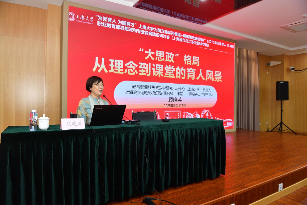 上海大学马克思主义学院教授、博导、伟长学者顾晓英作题为《“大思政”格局:从理念到课堂的育人风景》的专题讲座。顾晓英的讲座既提供了政策解读与理论指引,又分享了可复制、可推广的实践案例。讲座为参会院校推进课程思政改革、提升教师育人能力、构建“三全育人”格局提供了重要参考,助力职业教育在服务国家战略、培养“挺膺担当奋斗者”上发挥更大作用。顾晓英通过生动的课堂实例,展示了如何将思政元素“润物细无声”地融入专业教学,使思政教育更具感染力和实效性,为与会教师提供了具体可行的教学范式。