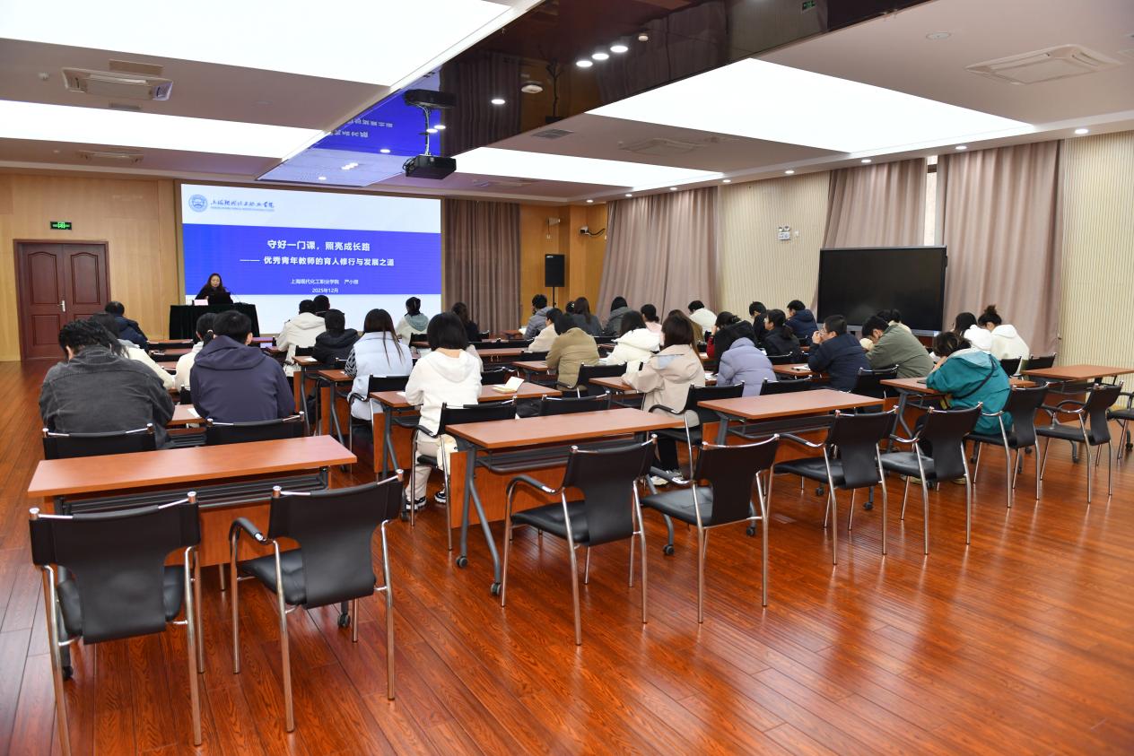 12月10日下午,金山区第九届“明天的导师”严小丽工作室在学校多功能厅开展课程思政教学专题研讨活动。本次活动以“守好一门课,照亮成长路——优秀青年教师的育人修行与发展之道”为主题,由工作室导师严小丽主讲,工作室全体成员及校优秀青年、骨干教师积极参与,共同搭建了一个聚焦课程思政与专业发展的深度交流平台。