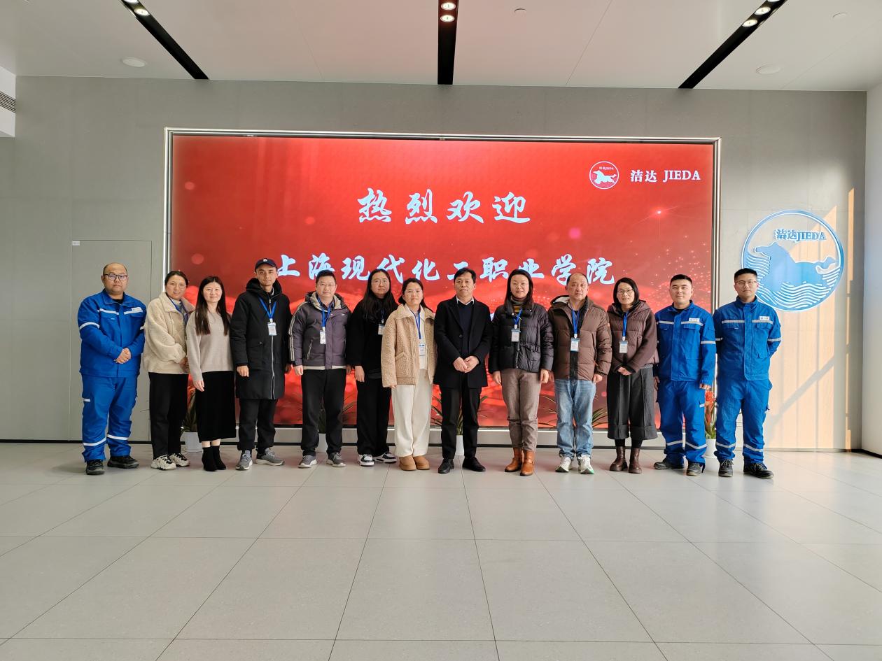 1月8日,为深入了解学生实习动态、强化校企协同育人机制,化学工程学院党支部书记胡迪君带队、材料智造教研室主任王志平牵头,联合校科研处及化学工程学院共8名教师,赴位于上海市金山区的上海洁达尼龙材料有限公司开展实地参观与座谈交流。此次走访旨在通过“片区对接”模式,深化产教融合,推动人才培养与产业需求精准对接。