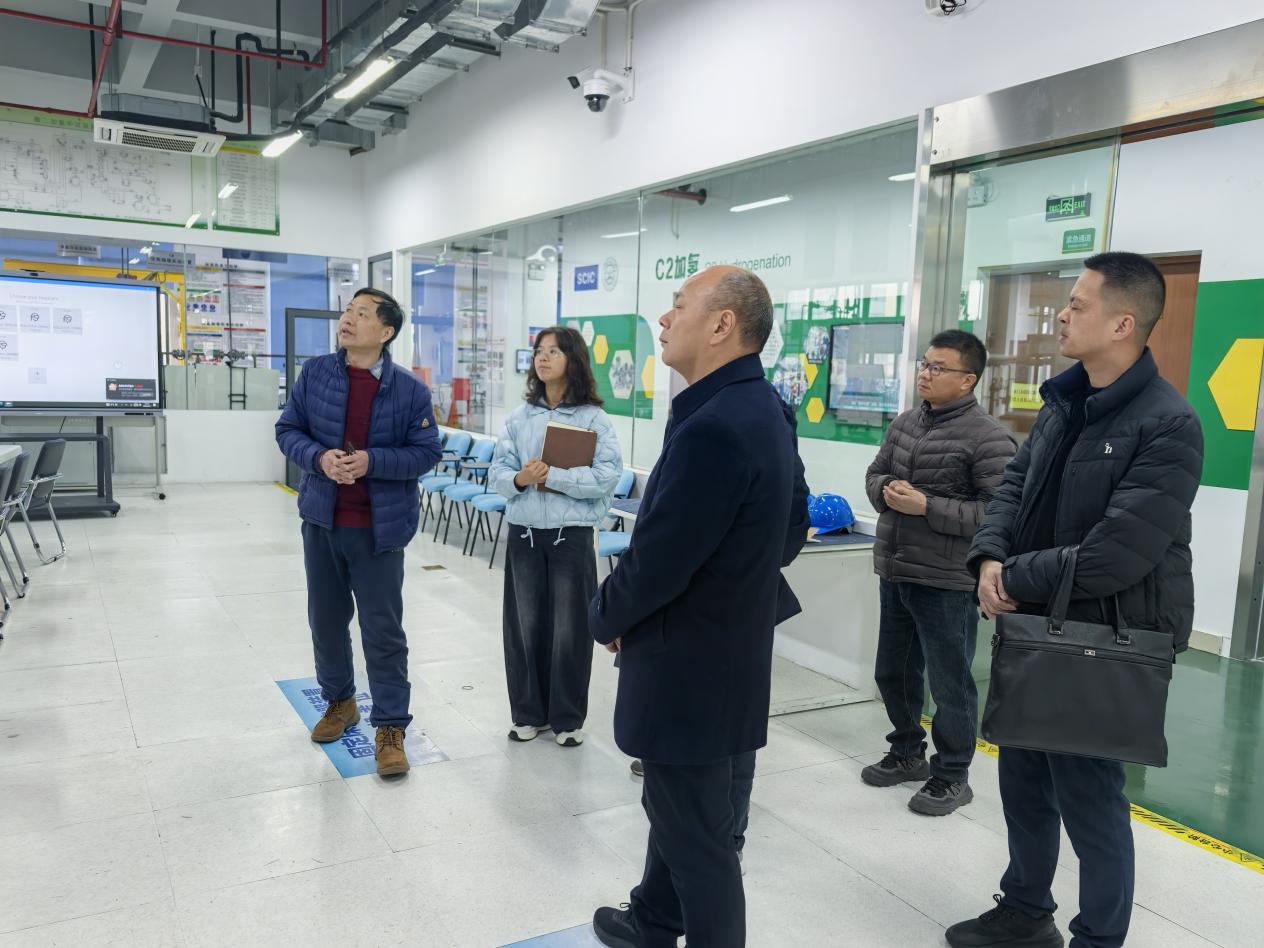 调研团实地考察了学院跨企业培训中心与化工综合实训大楼,系统观摩了科研实验室、中试实训装置、单元操作装置等实训平台。杨辽原详细介绍了实训基地的布局规划、功能配置与特色培训项目,全面展示了学院在实践教学与社会服务方面的硬实力。调研团成员对学院先进的硬件设施与高水平的实训能力给予高度评价,一致认为其具备支撑区域产业技术升级的坚实基础。