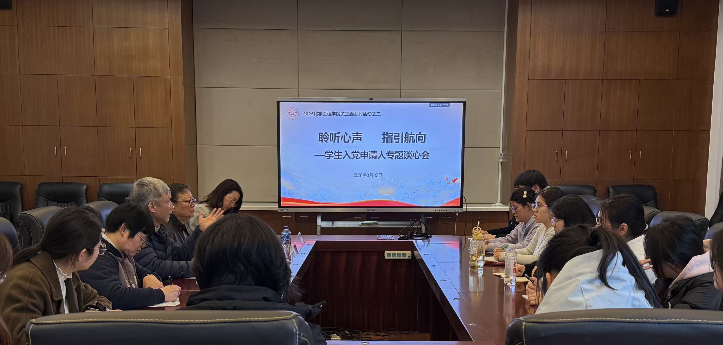 为充分发挥关工委“五老”育人优势,加强入党申请人思想引导,3月27日,化学工程学院组织学生入党申请人专题谈心会。学校关工委常务副主任李平清,学院关工委委员干洪珍、朱水清,支部书记胡迪君及2025级学生参会,会议由汪玉琴主持。