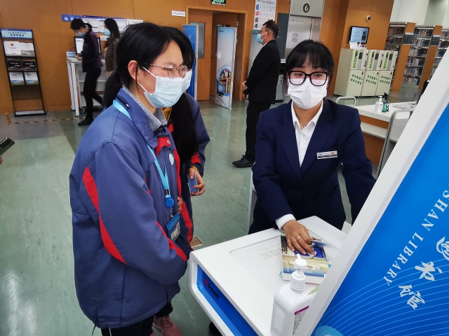 4月10日中午,在经贸特教负责人殷洁的组织下,特教班班主任何仁方、李翠兰、张晓红、徐燕汝,任课教师陈超、冯楠以及特教教辅人员共同带领学生安全抵达金山区图书馆。金山图书馆读者服务部卢伟主任提前为学生们统一安排办理了图书馆读者证,并于当天直接分发到同学们的手中。当同学们拿到属于自己的读者证,知道活动当天就可以借阅到自己喜欢的书籍时,都十分高兴,也向图书馆工作人员表达了感谢。今年办证流程和以往稍有不同:通过线上与图书馆预先对接学生信息,到馆直接拿证,缩短了拿证时间,提升了办事效率。