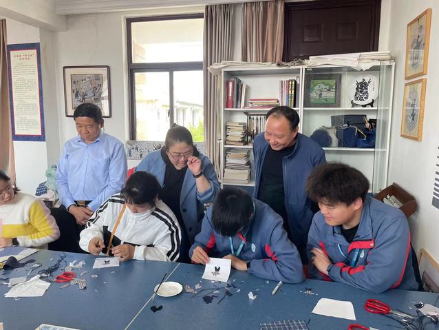 为进一步推动金山区特殊中职生实习就业工作,更好促进特殊教育学生从学校到社会的衔接。4月27日,应金山区残联工作邀请,学校经贸特教中心负责人殷洁、特教班主任李翠兰和徐燕汝,组织带领3名学生前往上海果赞文化创意中心进行观摩、体验学习,与金山吕巷非遗“土布贴画”建立起更加深入的校企合作关系。本次活动得到金山区教育局特教负责人徐忆遵的大力支持,徐忆遵来到非遗中心现场,与学校合力推进19、20级特殊中职生的岗位实习和就业。