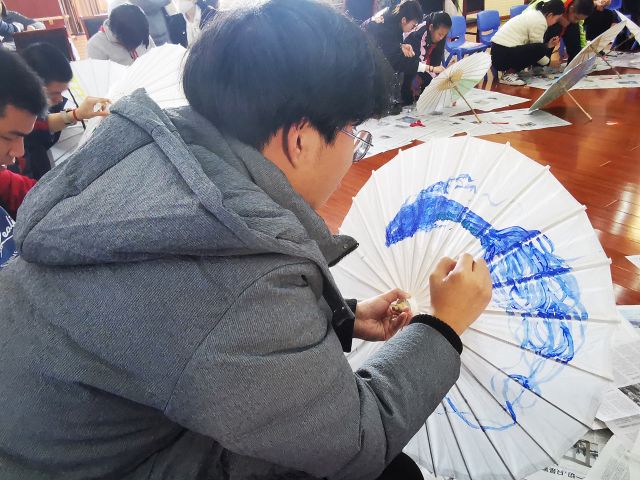 12月14日中午,殷洁和李翠兰带领四名参赛学生来到决赛地点。比赛分为学前组、小学组、中学中职组三个组别。一进入比赛现场,参赛学生快速进入比赛状态,有条不紊地做好赛前准备。在主持人讲清楚比赛规则后,所有同学纷纷拿出各自的看家本领,在伞上或大胆泼墨,或精心勾勒,流畅的线条显示出娴熟的技巧。随着时间的流逝,一幅幅精美的图案跃然伞面上。经过角逐,我校4位选手分别获得一等奖1名、二等奖2名、三等奖1名的好成绩。