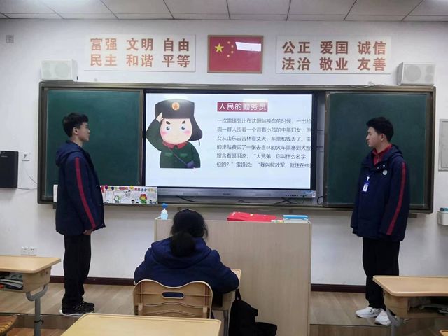 活动开始,各班级分别组织开展了雷锋精神学习宣讲主题班会,班会上,同学们将合作制作的学雷锋主题小报进行分享与展示,并且,通过朗诵雷锋同志的日记片段,深刻领悟雷锋同志那种无私奉献、乐于助人、坚韧不拔的精神风貌。同学们纷纷表示,要将这种精神内化为自己的行动准则。