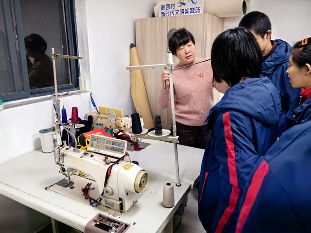 本次认识实习活动,还得到了金山田头超市左金莲经理的大力支持和协助。同时,学校中职特教19级毕业生吴诗琦同学也在当天现场,将自己在非遗盘扣中心学习的技艺和作品分享给学弟学妹们,大家相互鼓励,共同进步。