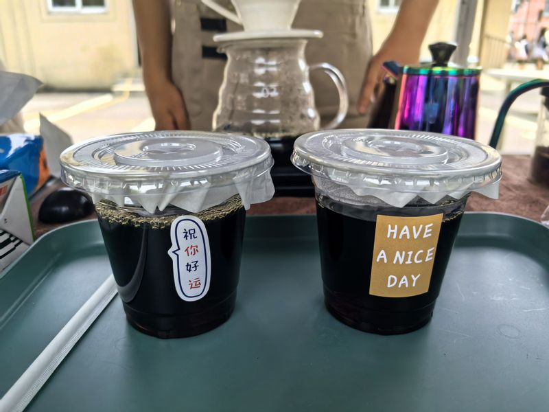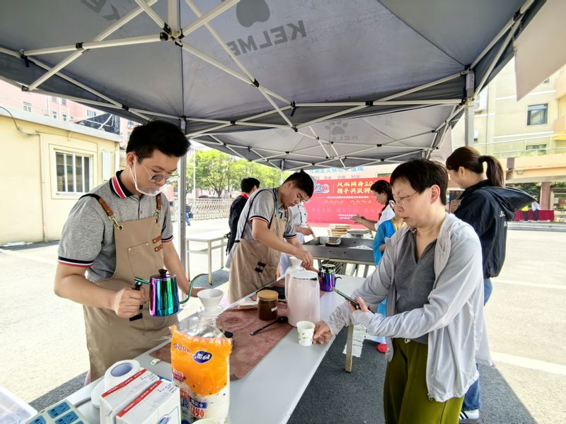 手冲咖啡摊位由来自上海化工职业学院特教中心教师学生团队倾情打造。特教中心负责人殷洁老师带队,《咖啡制作》课程执教教师徐燕耐心指导学生,从咖啡豆的挑选、研磨到冲泡,从种子到杯子,每一个步骤都倾注了耐心、爱心、责任心。