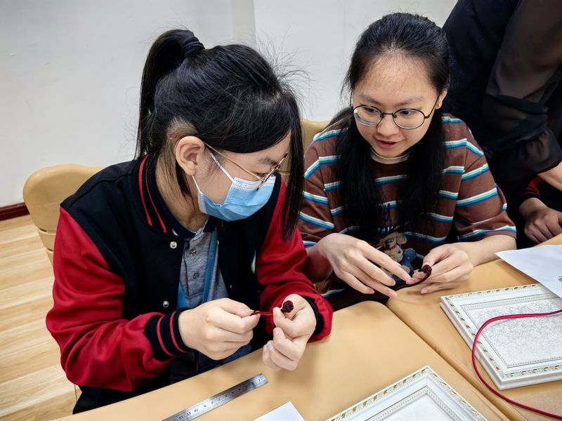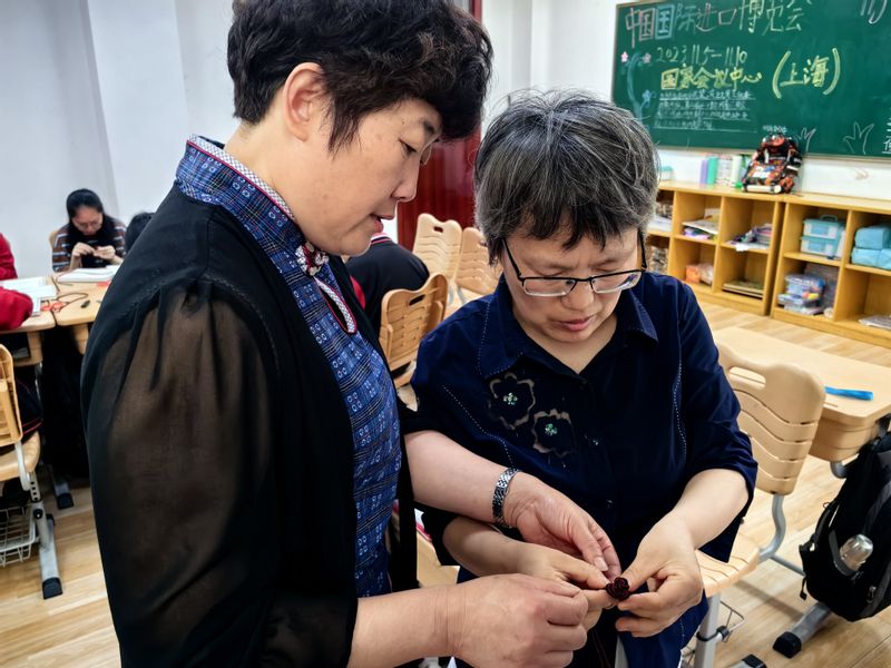 非遗盘扣制作实操类主题培训,让更多的师生了解到我国优秀的非物质文化遗产项目,同时为学生提供了一项有用的技能,这些技能未来可能成为他们的一项就业技能。通过这样的培训,学员不仅能够学习到传统技艺,还能够在现代社会中找到一种独特的自我表达方式。中华民族优秀美好的非遗文化赋予了吴诗琦同学和每一位特殊孩子更多展示自我、人生出彩的机会。学校多年来在特殊职业教育工作中倡导的多元融合、残健共行、尊重差异、因材施教,为金山特殊的孩子们创设了高质量的、技能多元的、精神富足的生涯发展无障碍大环境。