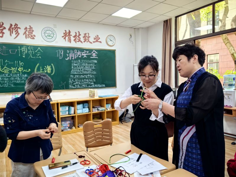 为进一步拓宽特殊学生技能多样化,使特殊学生领悟并亲身参与到中华民族优秀非遗文化的学习和传承的社会环境中,促进特殊职业教育教学思政建设,5月30日,经贸特教中心邀请了上海桑连园艺术文化中心(非遗盘扣)负责人宋秀丽老师到校,为特教任课教师和部分学生进行“非遗盘扣制作”的实操专题培训,为非遗盘扣工艺进校园、进课程做好前期准备。