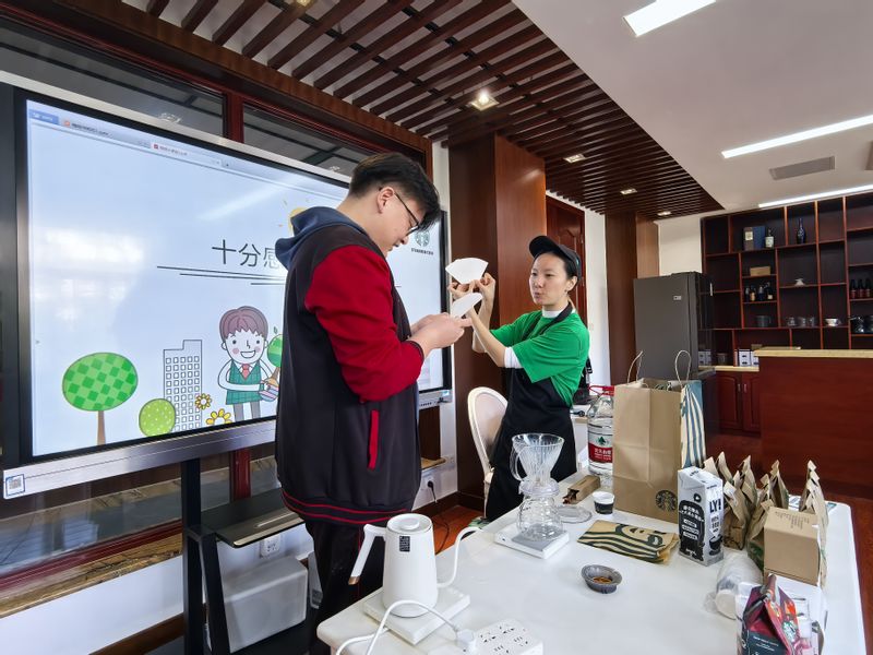 随着秋冬季的寒风渐起,星巴克咖啡公益课程企业讲师团队将温暖的咖啡香气带进了上海现代化工职业学院特教中心。11月13日,一场特别的咖啡制作培训在这里展开,为金山中职特教的学生们提供了一次独特的学习体验。此次活动不仅教会了学生们如何制作咖啡,更为他们未来的职业道路展示了新的可能性。