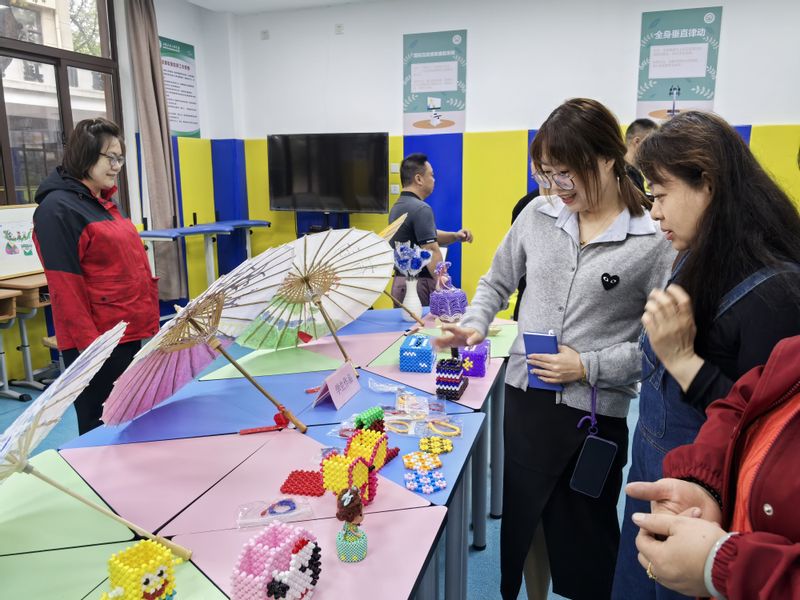特教负责人殷洁介绍了孩子们亲手制作的作品,看到学校为孩子们精美装裱好的一幅幅绘画作品、手工作品和非遗盘扣作品,家长们很欣喜,体会到了别样的幸福感。活动现场,殷老师分别走进了三个班级,以其深厚的专业素养和对学生无微不至的关怀,根据三个班级不同阶段的培养目标和学生情况,与家长共同探讨,具体问题具体分析,并给出了建设性意见,为学生成长提供更加精准有效的教育支持,更明确了家校共育的重要意义。