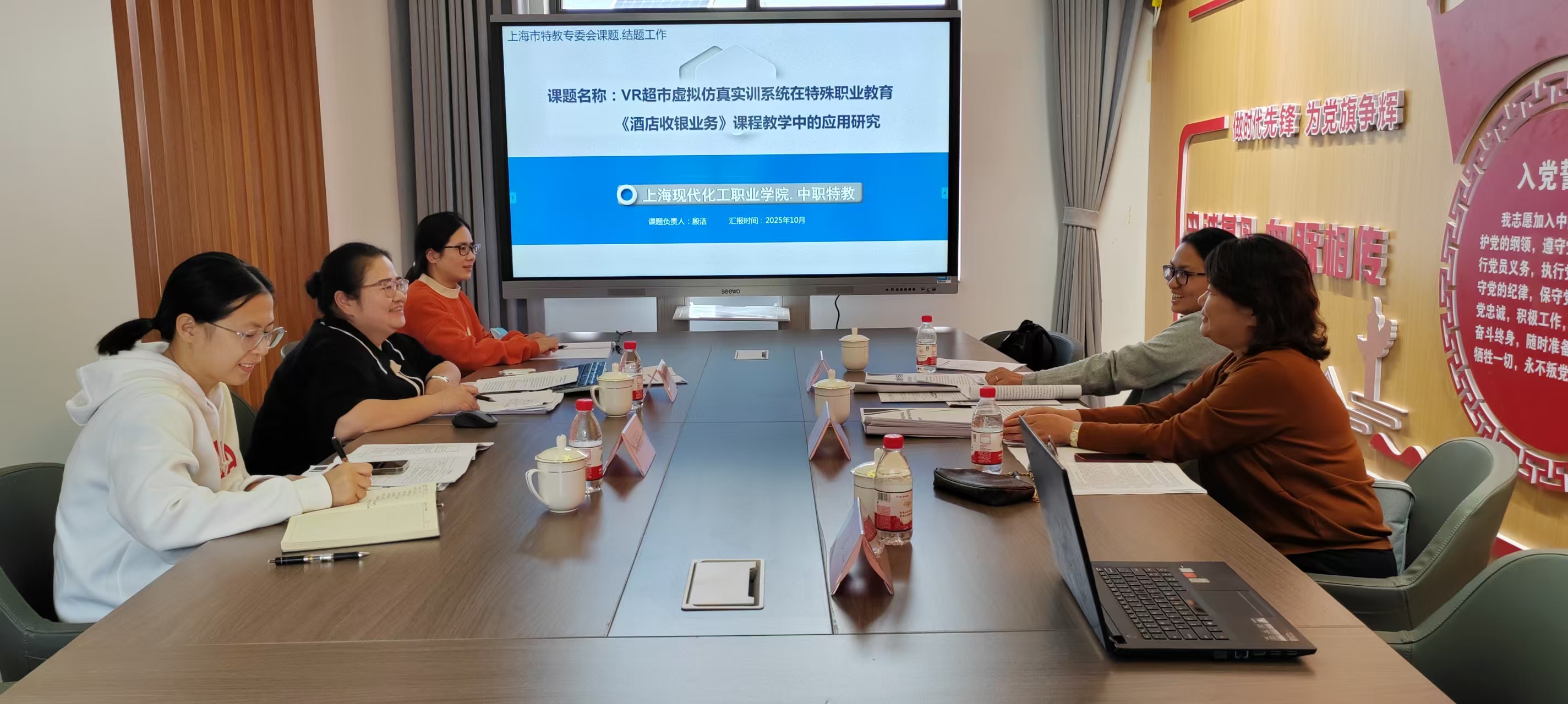 10月23日下午,学校上海市教育学会特殊教育专业委员会教育科研课题《VR超市虚拟仿真实训系统在特殊职业教育<酒店收银业务>课程教学中的应用研究》结题专家鉴定工作在金山区劳技学校(中职特教新校区)1号楼会议室顺利举行。