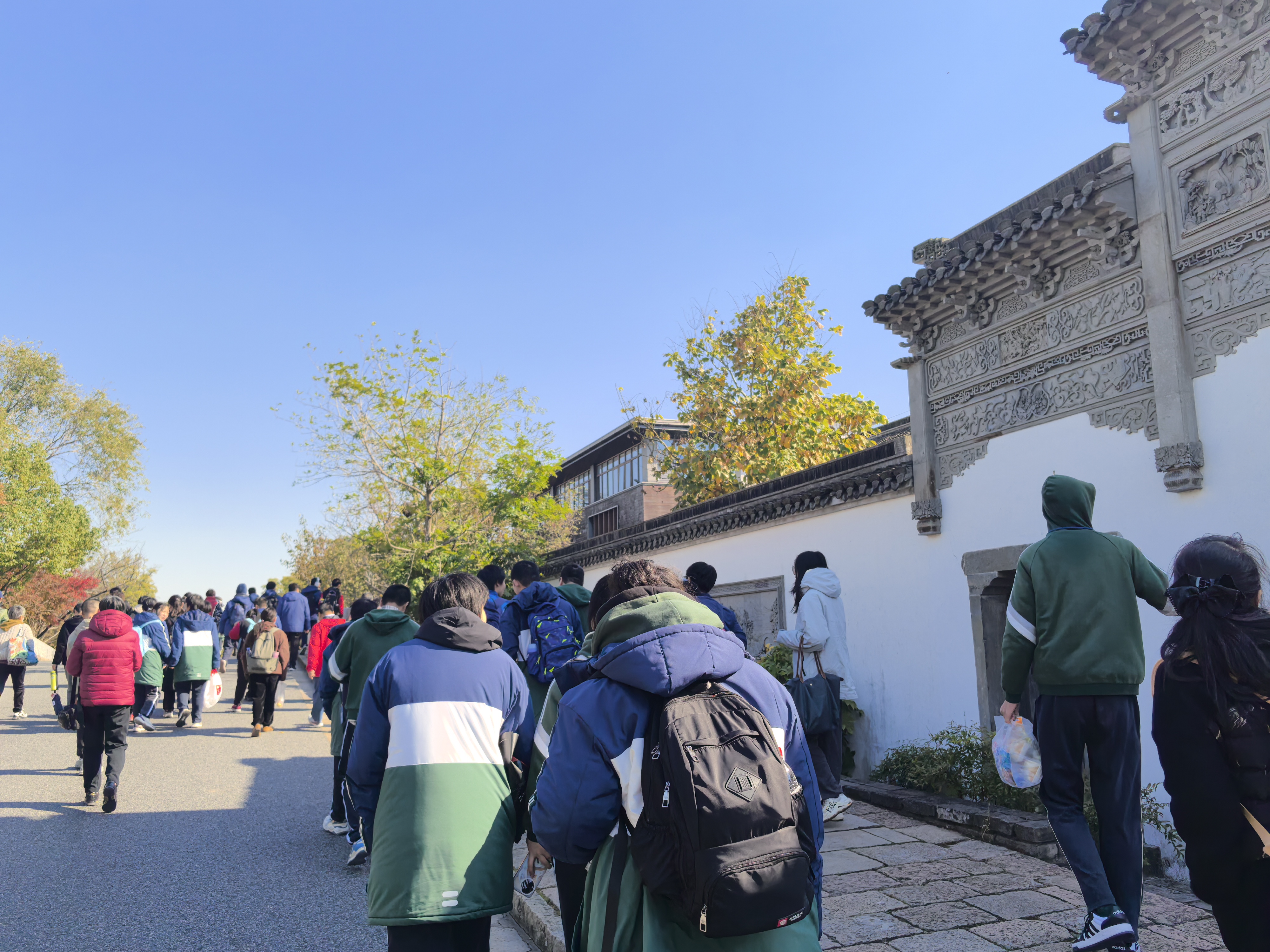 午后,同学们来到了被誉为“上海之根”的广富林文化遗址。与上午现代化工厂的氛围不同,这里充满了浓厚的历史底蕴与宁静的秋日意境。大家漫步在漂浮于水面的博物馆屋顶,穿梭于白墙黛瓦的徽派建筑群中,欣赏着湖光秋色。老师们结合现场景物,用简单易懂的语言为同学们讲述广富林的历史故事,介绍传统的农耕器具和建筑特色。同学们在放松身心的同时,也潜移默化地接受着本土文化的熏陶,对脚下这片土地的历史有了初步的感知。秋高气爽,云淡风轻,这次文化漫步不仅是一次身体的出行,更是一次心灵的滋养。