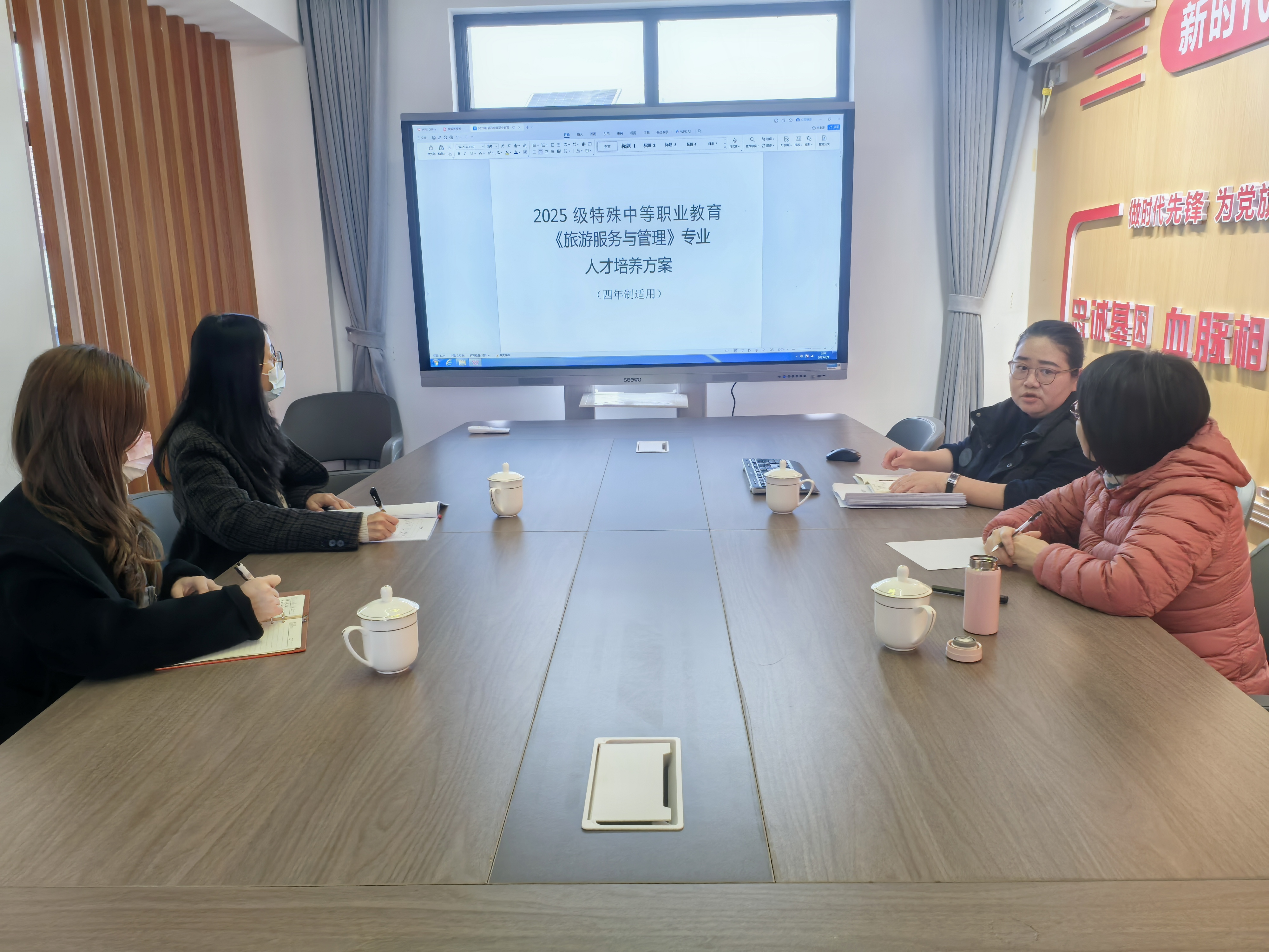 本次调研指导的核心环节,是围绕中职特教相关专业的人才培养方案展开研讨。蔡蓓瑛重点审视了课程体系的构建,从特殊教育规律与职业教育要求的双重角度出发,对课程目标的设定、课程内容的遴选与组织、教学方法的适配以及评价体系的完善等方面进行了深入剖析和细致指导。她强调,特殊中职教育课程设置以“育人为本、尊重差异、促进融合、支持就业”为核心理念,构建以融入社会为导向的普特融合、普职融通的课程体系,既要充分考虑特殊学生的身心发展特点和学习基础,注重潜能开发和功能补偿,又要紧密对接社会经济发展和劳动力市场需求,强化职业技能培养和职业素养培育,科学构建融合性与支持性并重的课程体系,为学生未来顺利融入社会、实现高质量就业和终身发展奠定坚实基础。对于金山中职特教2025最新版专业人培方案中课程设置情况,蔡蓓瑛表示课程设置很全面、有特色,还包含了传统文化传承和金山地方特色。